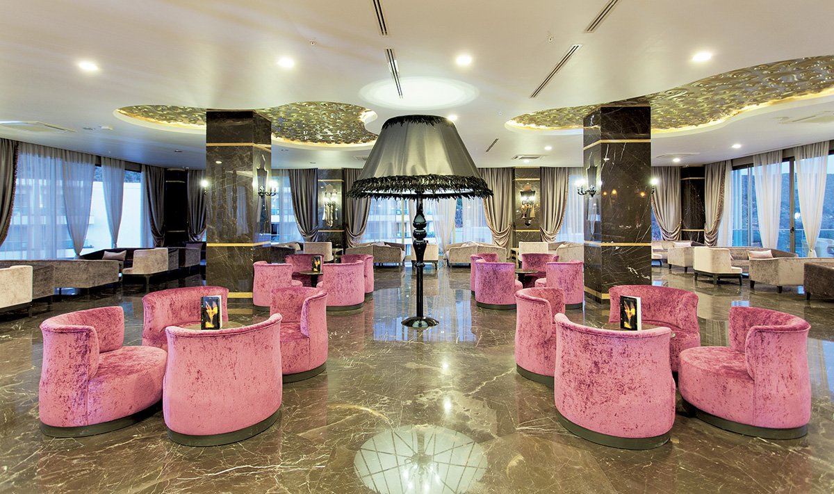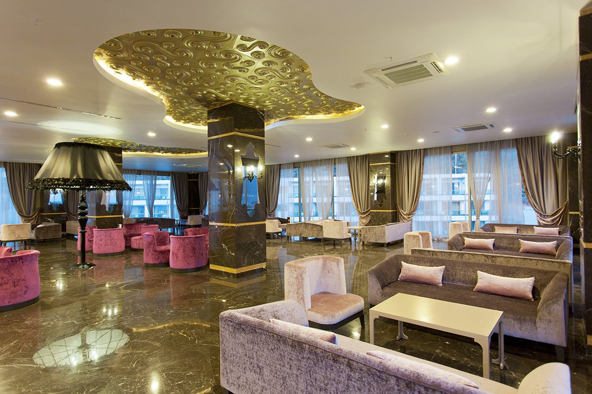 pięciogwiazdkowy, luksusowy i stylowy, zbudowany w 2013 r., 187 pokoi, 6 budynków, 2-3 piętra, 6 wind, eleganckie, przestronne lobby, całodobowa recepcja, restauracja główna Asgard - dania w formie bufetu, kuchnia międzynarodowa, dania wegetariańskie, 3 restauracje à la carte: Kayf-I Ala - kuchnia turecka, Rocca - owoce morza, Caliente - kuchnia włoska, w restauracjach à la carte wymagana wcześniejsza rezerwacja, 3 bary: bar w lobby, bar przy basenie i bar przy plaży; kantor; centrum konferencyjne, nowocześnie zaprojektowany ogród, bezpłatny internet bezprzewodowy w lobby i centrum konferencyjnym; za opłatą: room-service, pralnia, fryzjer, salon piękności; akceptowane karty kredytowe: Visa, MasterCard; hotel przyjmuje gości powyżej 16. roku życia.