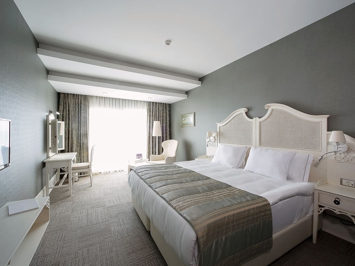 standardowy: 2-os. (możliwość 1 dostawki), ok. 30 m², klimatyzowany, łazienka (prysznic, wc; suszarka), telewizja satelitarna, telefon, minibar, zestaw do kawy i herbaty, sejf (płatny); bezpłatne łóżeczko dla dziecka do 2 lat na zamówienie przed przyjazdem; balkon (stolik, krzesełka); widok na morze za dopłatą.