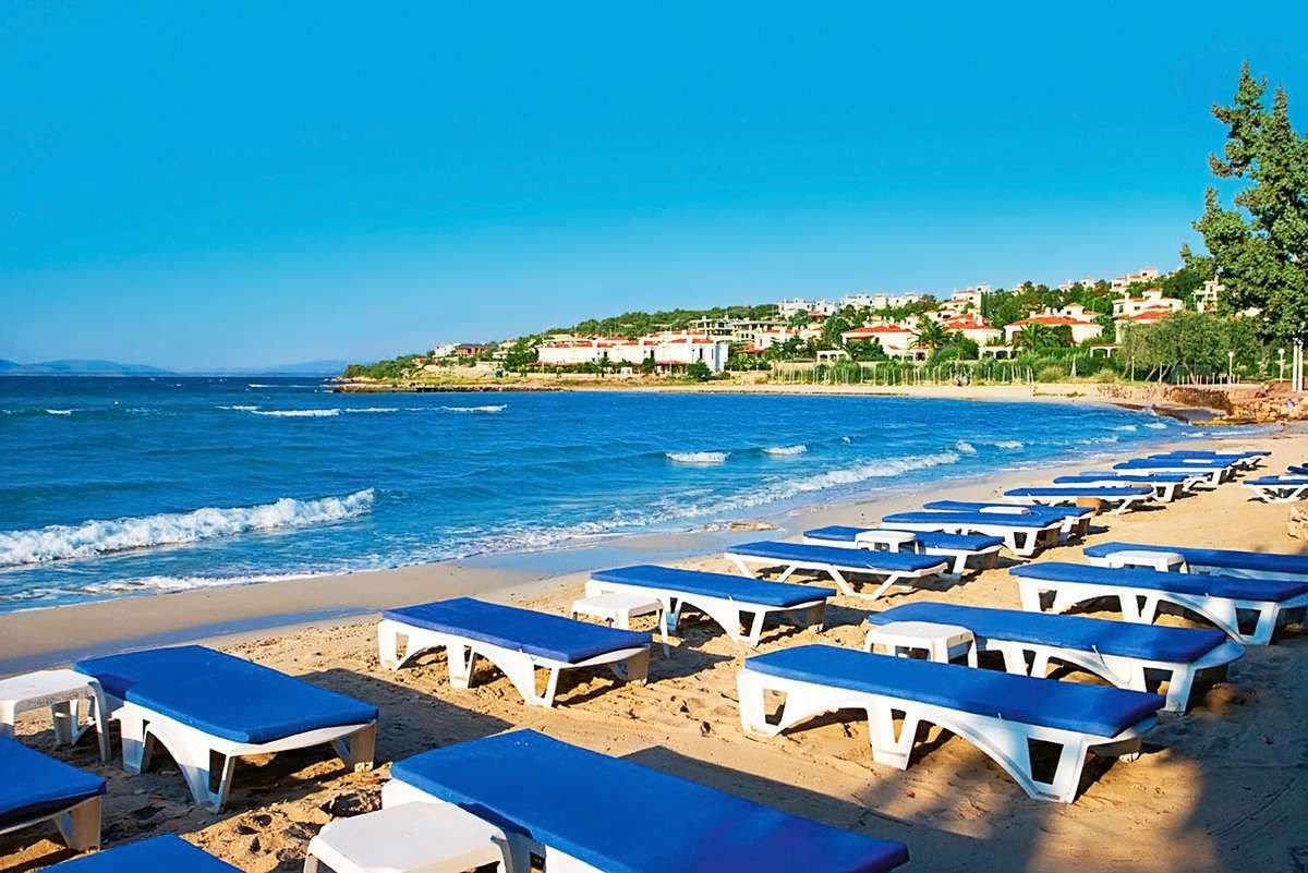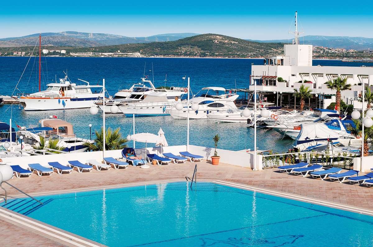Bajecznie położony w pięknej zatoce z luksusową przystanią jachtową, w ogrodzie o powierzchni 140 tys. m², jest idealnym miejscem na spędzenie komfortowych wakacji w pięknym otoczeniu. Zwrócony w stronę morza, gwarantuje niezapomniane widoki już z hotelowego tarasu. Położony w miejscu słynącym przede wszystkim z szerokiej piaszczystej plaży, w bliskiej odległości od Cesme i Alacati - miejscowości nazywanych mekką windsurferów - jest idealny dla wielbicieli sportów wodnych i nie tylko. Po wszystkich szaleństwach najlepiej się zrelaksować w eleganckim spa, oferującym bogatą ofertę zabiegów i baseny termalne z ciepłą i zimną wodą.