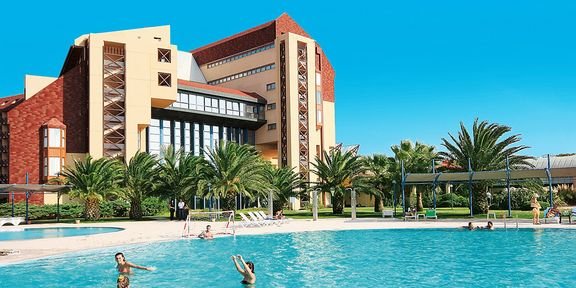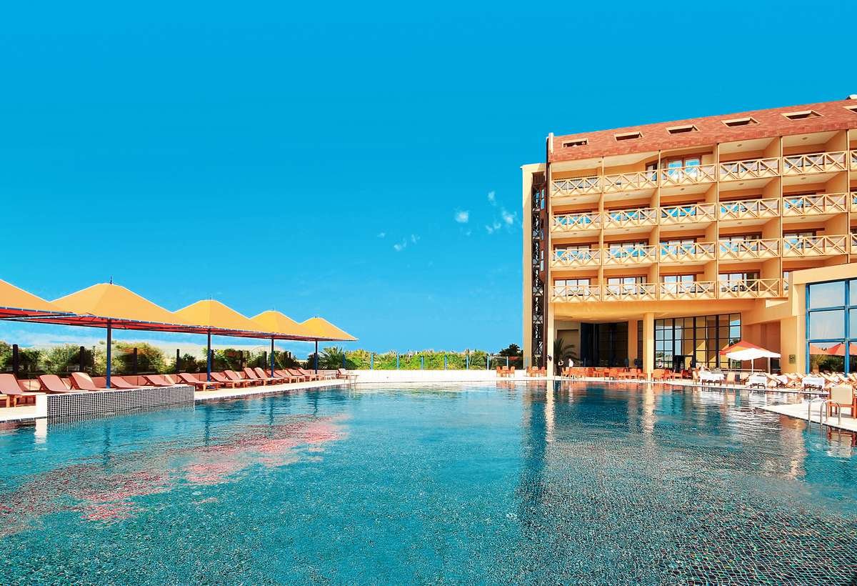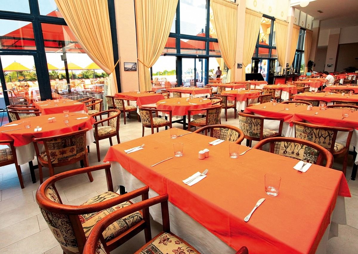 śniadanie (7.00-10.00), późne śniadanie (10.00-11.00), obiad (12.30-14.00), kolacja (19.30-21.30) w formie bufetu w restauracji głównej; przekąski (14.30-16.30), kawa, herbata i ciastko (16.00-17.30); nielimitowana ilość lokalnych napojów alkoholowych (10.00-1.00), napojów bezalkoholowych całodobowo w wyznaczonym barze; wymagane noszenie opasek all inclusive.