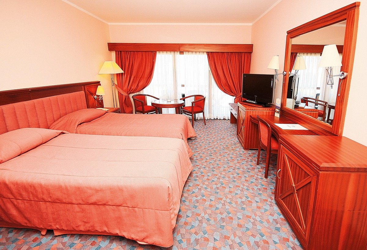 standardowy: 2-os. (możliwość 1 lub 2 dostawek), ok. 25 m², elegancki, klimatyzowany, łazienka (wanna lub prysznic, wc; suszarka), telewizja satelitarna, sejf, telefon, minibar (2 wody, 1 cola na dzień bezpłatnie); bezpłatne łóżeczko dla dziecka do 2 lat; balkon (stolik i krzesełka); wszystkie pokoje z bocznym widokiem na morze.