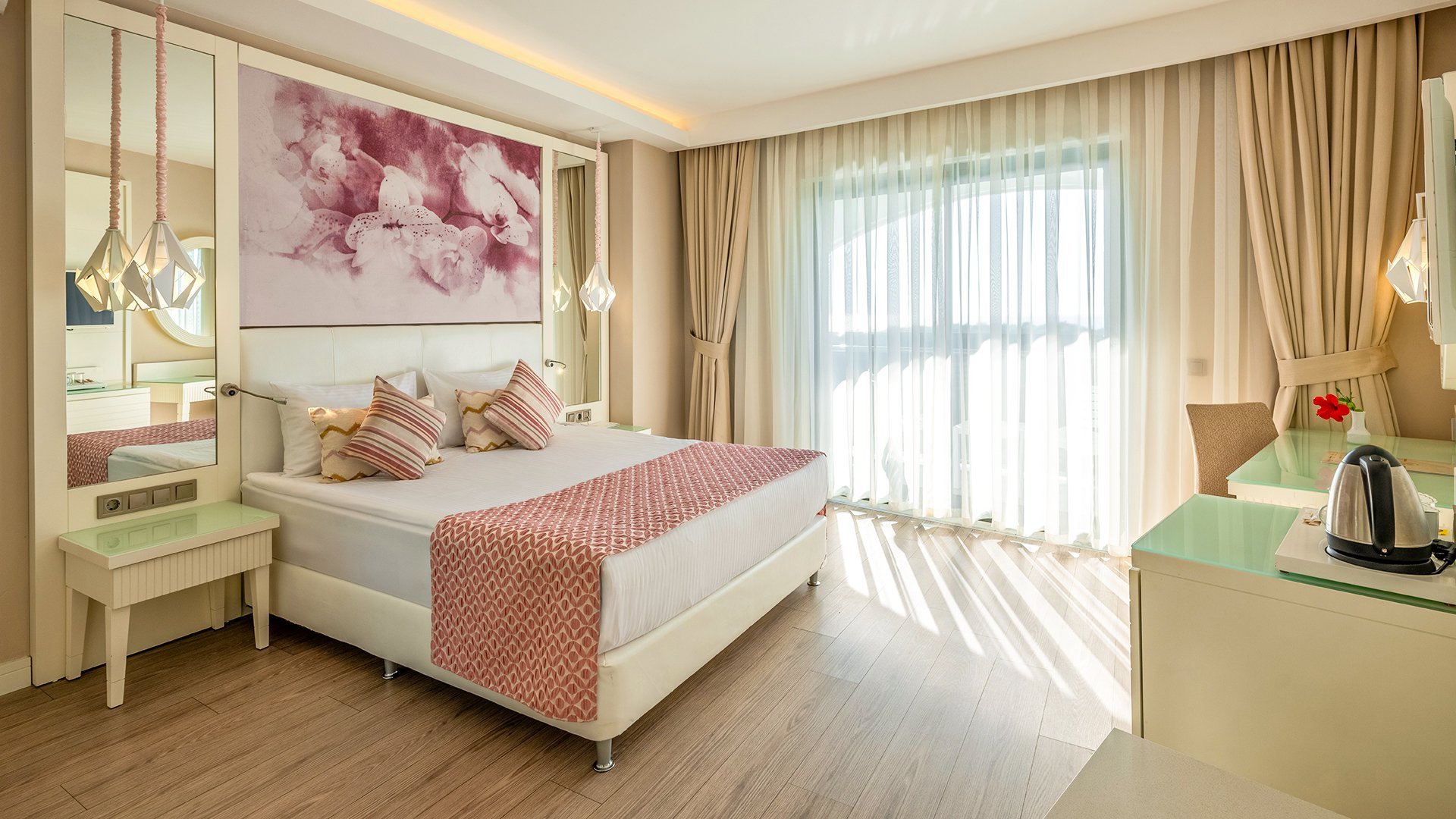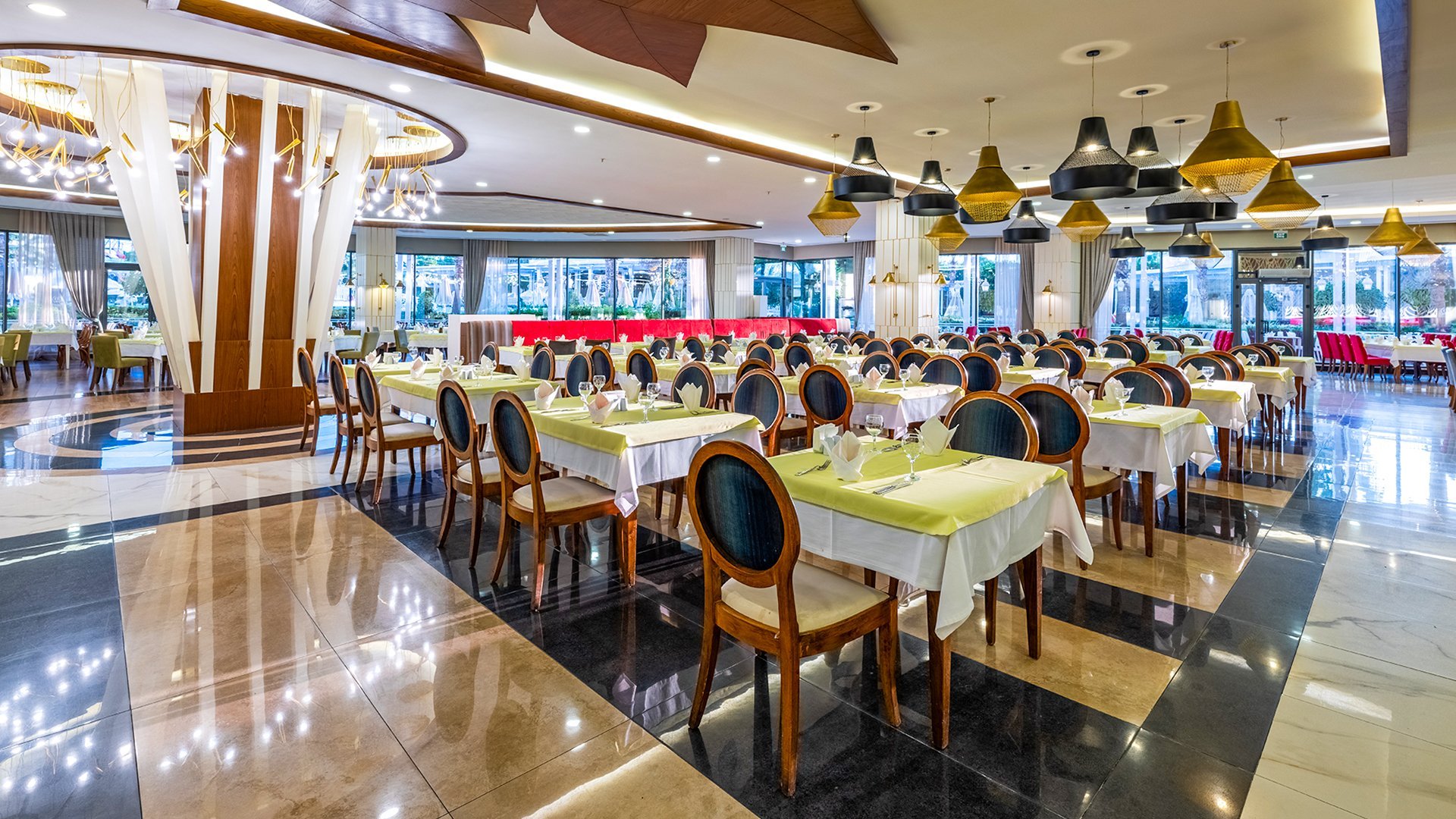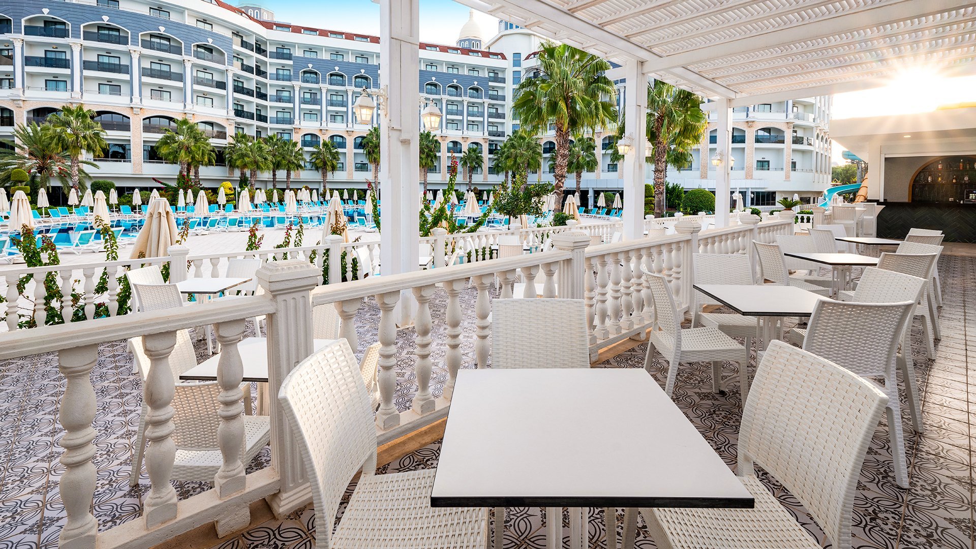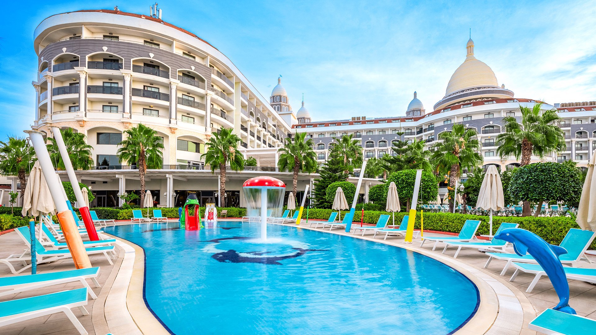 Imponujący rozmachem, położony blisko plaży z bezpłatnym serwisem, zachwyca przestronnymi, elegancko urządzonymi wnętrzami i udogodnieniami dla wczasowiczów w każdym wieku. Czekają tu komfortowe, doskonale wyposażone pokoje, w tym z widokiem na morze, rozbudowana strefa basenów i bogata oferta kulinarna w restauracjach serwujących dania kuchni tureckiej, śródziemnomorskiej i międzynarodowej. Najmłodsi spędzą beztrosko czas na zabawie z animatorami, w miniklubie i na placu zabaw, a na chwile wodnego szaleństwa mogą wybrać się na basen z 6 zjeżdżalniami. Spragnieni relaksu odnajdą ukojenie w spa z sauną, łaźnią parową i hammamem, a aktywni urlopowicze zadbają o formę na siłowni, podczas animacji i wielu sportowych atrakcji. To fantastyczne miejsce na wakacje dla całej rodziny!