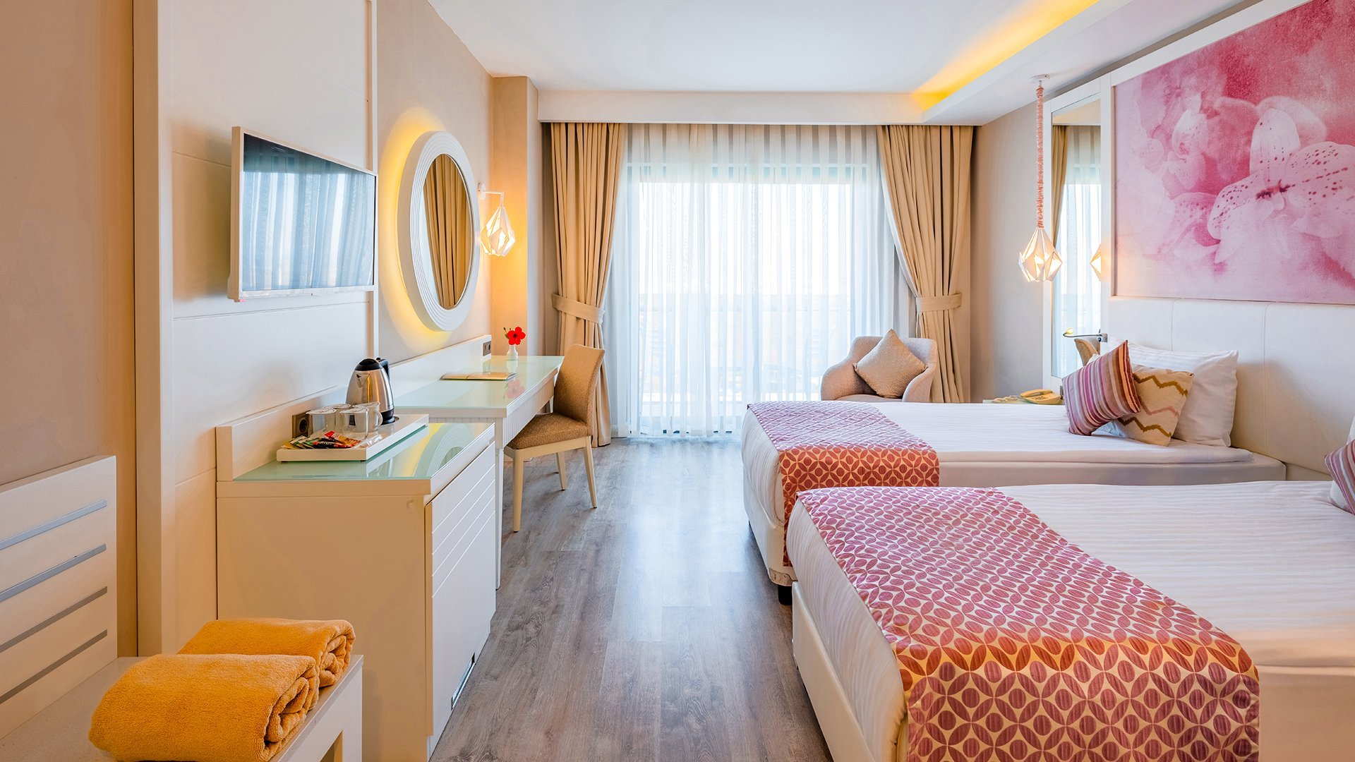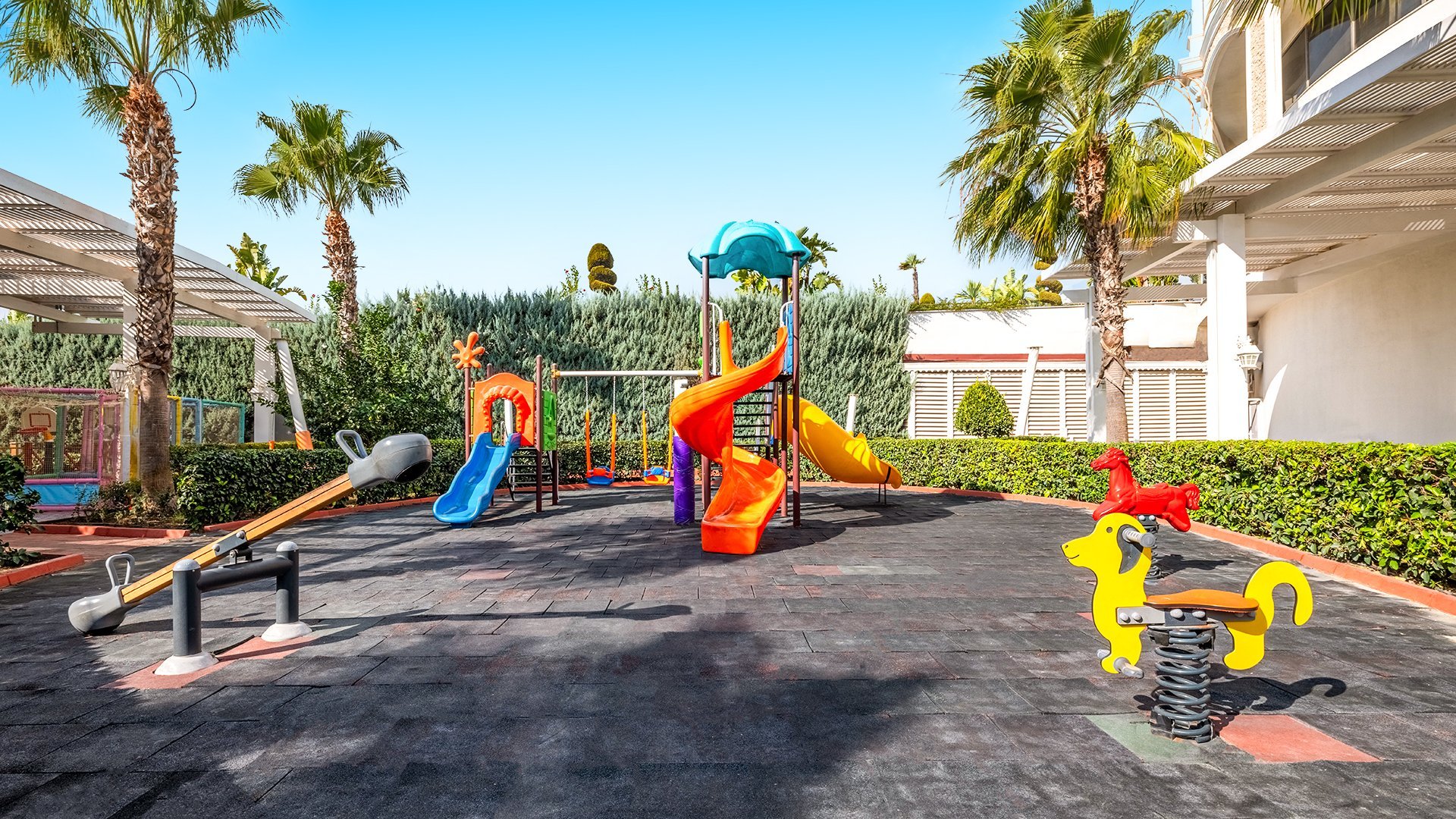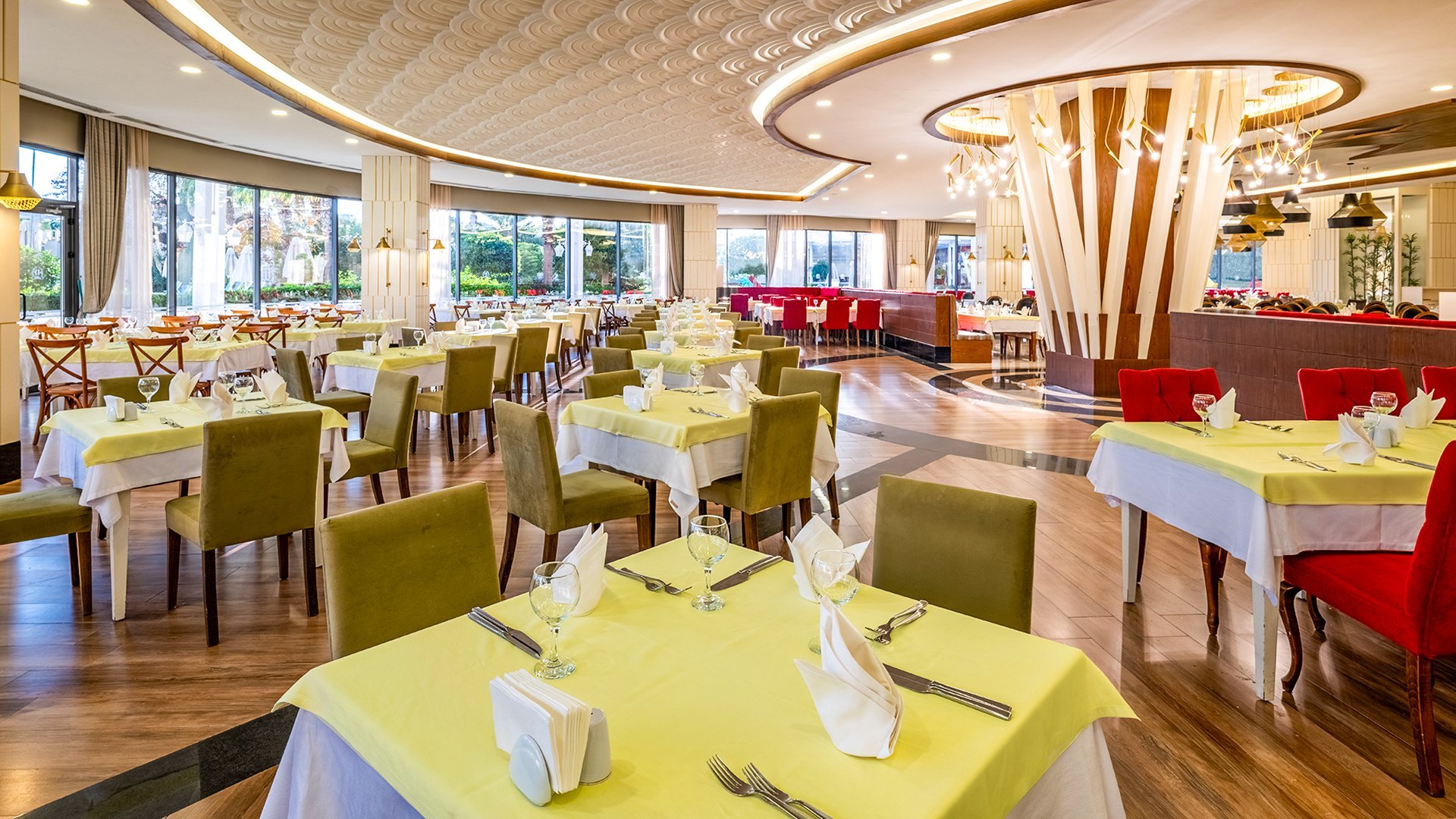 Imponujący rozmachem, położony blisko plaży z bezpłatnym serwisem, zachwyca przestronnymi, elegancko urządzonymi wnętrzami i udogodnieniami dla wczasowiczów w każdym wieku. Czekają tu komfortowe, doskonale wyposażone pokoje, w tym z widokiem na morze, rozbudowana strefa basenów i bogata oferta kulinarna w restauracjach serwujących dania kuchni tureckiej, śródziemnomorskiej i międzynarodowej. Najmłodsi spędzą beztrosko czas na zabawie z animatorami, w miniklubie i na placu zabaw, a na chwile wodnego szaleństwa mogą wybrać się na basen z 6 zjeżdżalniami. Spragnieni relaksu odnajdą ukojenie w spa z sauną, łaźnią parową i hammamem, a aktywni urlopowicze zadbają o formę na siłowni, podczas animacji i wielu sportowych atrakcji. To fantastyczne miejsce na wakacje dla całej rodziny!