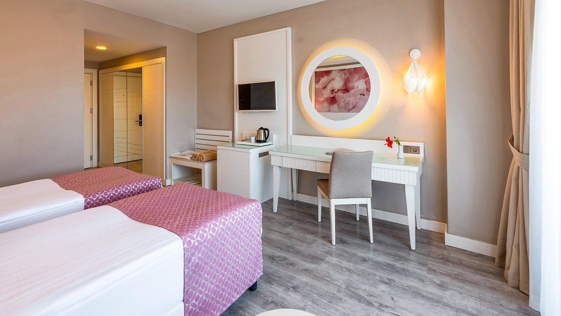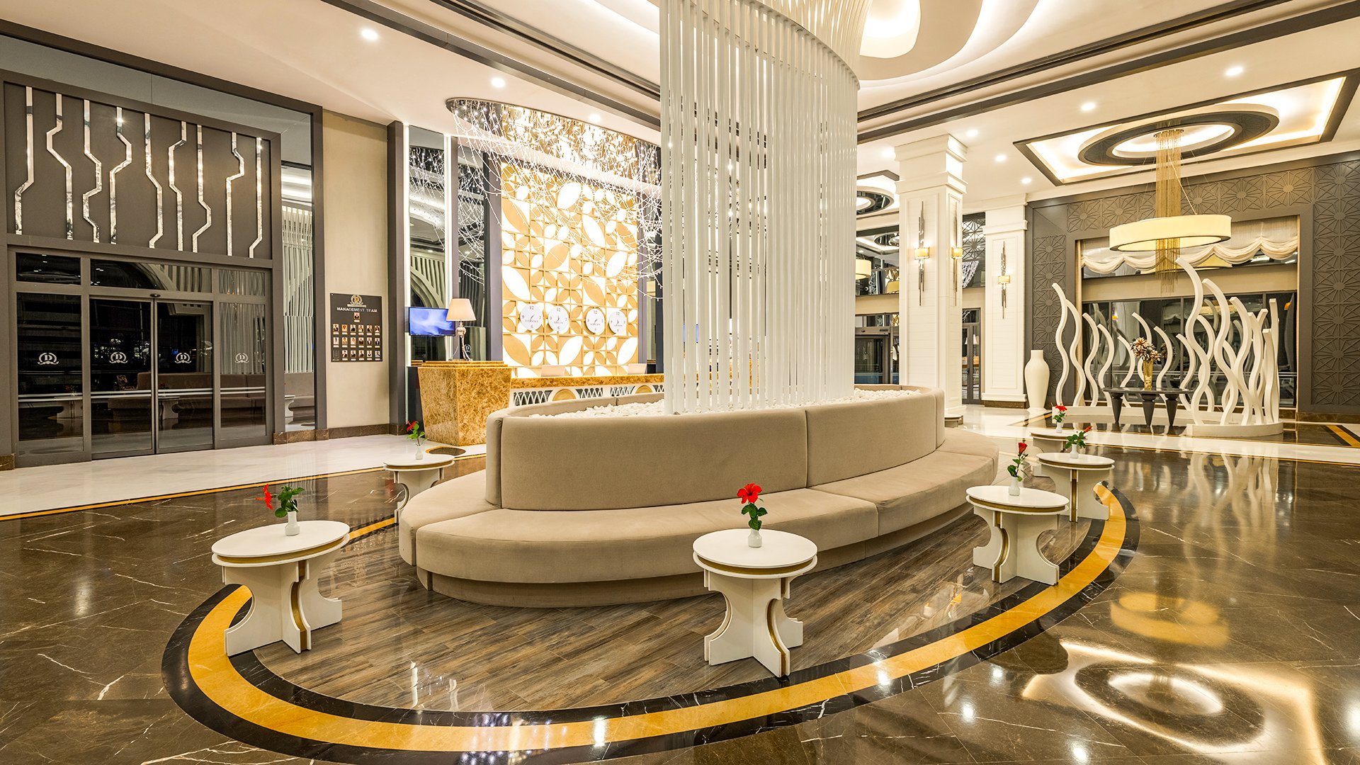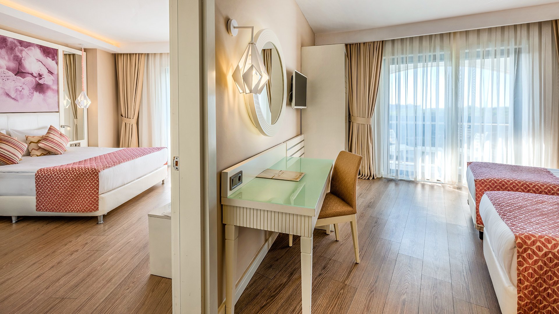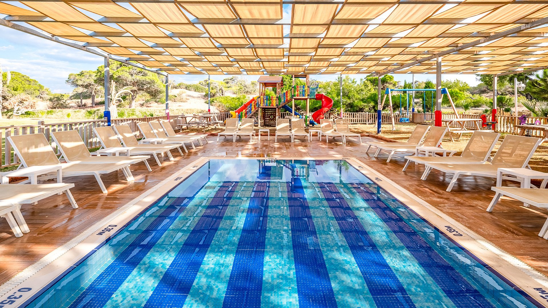 Imponujący rozmachem, położony blisko plaży z bezpłatnym serwisem, zachwyca przestronnymi, elegancko urządzonymi wnętrzami i udogodnieniami dla wczasowiczów w każdym wieku. Czekają tu komfortowe, doskonale wyposażone pokoje, w tym z widokiem na morze, rozbudowana strefa basenów i bogata oferta kulinarna w restauracjach serwujących dania kuchni tureckiej, śródziemnomorskiej i międzynarodowej. Najmłodsi spędzą beztrosko czas na zabawie z animatorami, w miniklubie i na placu zabaw, a na chwile wodnego szaleństwa mogą wybrać się na basen z 6 zjeżdżalniami. Spragnieni relaksu odnajdą ukojenie w spa z sauną, łaźnią parową i hammamem, a aktywni urlopowicze zadbają o formę na siłowni, podczas animacji i wielu sportowych atrakcji. To fantastyczne miejsce na wakacje dla całej rodziny!
