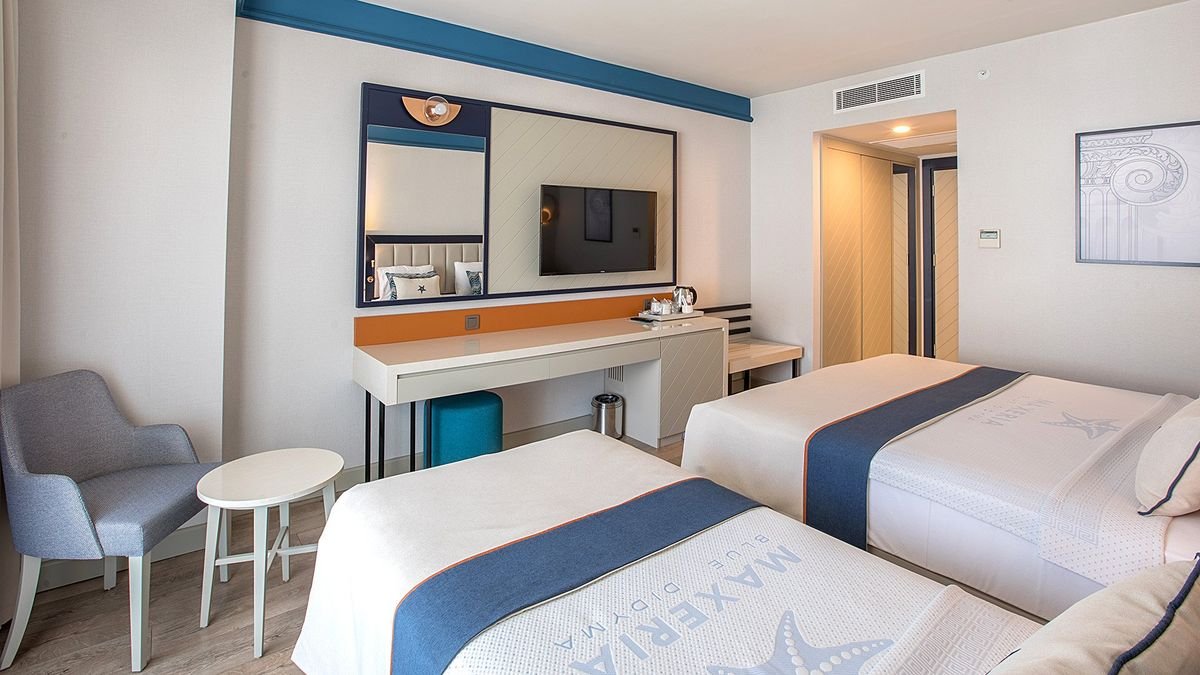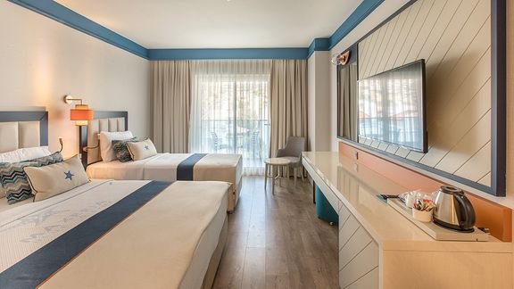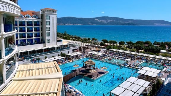 Doskonała propozycja na urlop z rodziną! Nowoczesny i elegancki, położony w pierwszej linii brzegowej, z widokiem na góry i małą wyspę Sapli Adasi, zaprasza na wypoczynek w typowo wakacyjnej atmosferze. Dużym atutem hotelu jest bogata infrastruktura – na najmłodszych czekają tu zajęcia w miniklubie i profesjonalne animacje, dorosłym polecamy zarezerwować czas na wizytę w spa lub relaks nad basenem. W hotelu aż 4 restauracje, które serwują m.in. przysmaki kuchni włoskiej i tureckiej, więc każdy odnajdzie tu swoje smaki. Fani morskich klimatów również nie będą zawiedzeni – najlepiej oderwać się na chwilę od hotelowych udogodnień i skusić na spacer piaszczystym brzegiem lub wypoczynek w pięknym otoczeniu lazurowego morza!