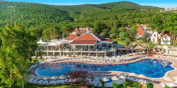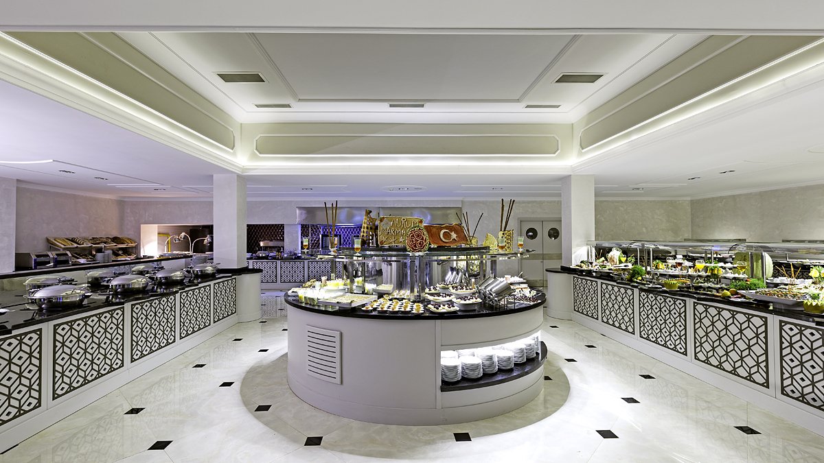 pięciogwiazdkowy, rozbudowany w 2015 r., 253 pokoje, kilkanaście budynków, 2 piętra, przestronne, eleganckie lobby, całodobowa recepcja, restauracja główna Flamingo – dania w formie bufetu, kuchnia międzynarodowa, dostępne foteliki i menu dla dzieci, dania wegetariańskie, 3 restauracje à la carte: Espadon – owoce morza, La Luna – kuchnia włoska, Sultan Sofrasi – kuchnia turecka, 5 barów: w lobby, przy basenie, w dyskotece, snack bar, Patisserie; minimarket, sklep z pamiątkami; ogród, bezpłatny internet bezprzewodowy w lobby; za opłatą: room-service, fryzjer, opiekunka do dziecka; akceptowane karty kredytowe: Visa, MasterCard.