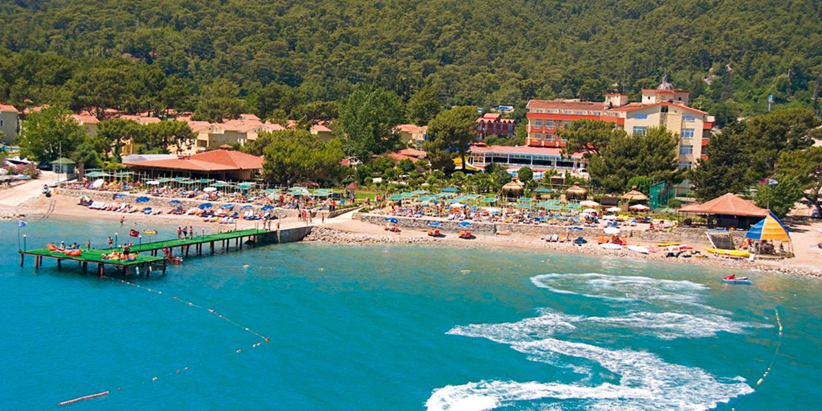 w dzielnicy hotelowej, ok. 2 km od centrum Beldibi, przy drodze lokalnej, najbliższe sklepy i bary ok. 50 m od hotelu, ok. 10 km od KEMER, ok. 40 km od Antalyi; ok. 45 km od lotniska w Antalyi.