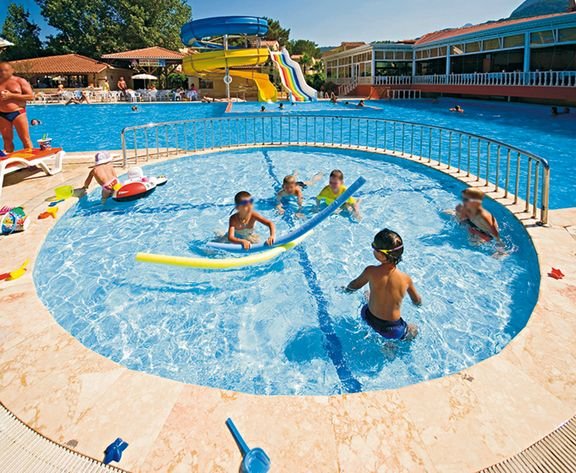 basen, słodka woda, nieregularny kształt, ok. 555 m², gł. 1,35-1,9 m, 2 zjeżdżalnie, brodzik, słodka woda, ok. 20 m², gł. 0,3 m, przy basenie bezpłatne parasole, leżaki i materace, ręczniki za kaucją; siatkówka plażowa, tenis stołowy, rzutki, fitness; animacje dla dorosłych i dla dzieci (zajęcia sportowe, występy, muzyka na żywo), miniklub (4-12 lat), plac zabaw dla dzieci; centrum spa: bezpłatnie: sauna, łaźnia turecka; za opłatą: zabiegi na twarz i ciało; sporty wodne na plaży (oferta zewnętrzna).