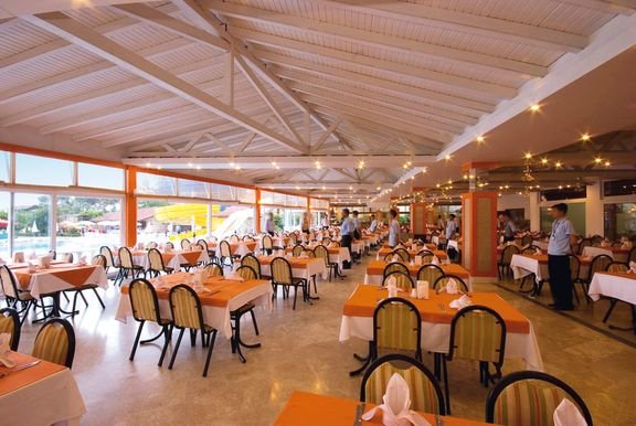 śniadanie (7.00-10.00), obiad (12.30-14.30) i kolacja (19.00-21.00) w formie bufetu w restauracji głównej; podwieczorek (11.00-16.00) w wyznaczonym miejscu; przekąski: pizza, frytki, spaghetti, ciasta, kawa, herbata (12.30-16.00, 16.30-17.30) w snack barze; lokalne napoje bezalkoholowe i alkoholowe (10.00-23.00) w wyznaczonych barach.