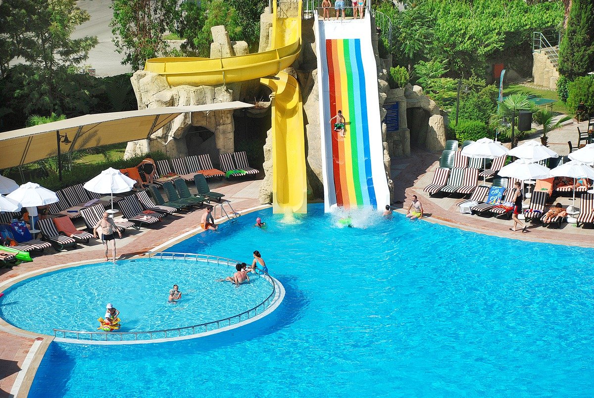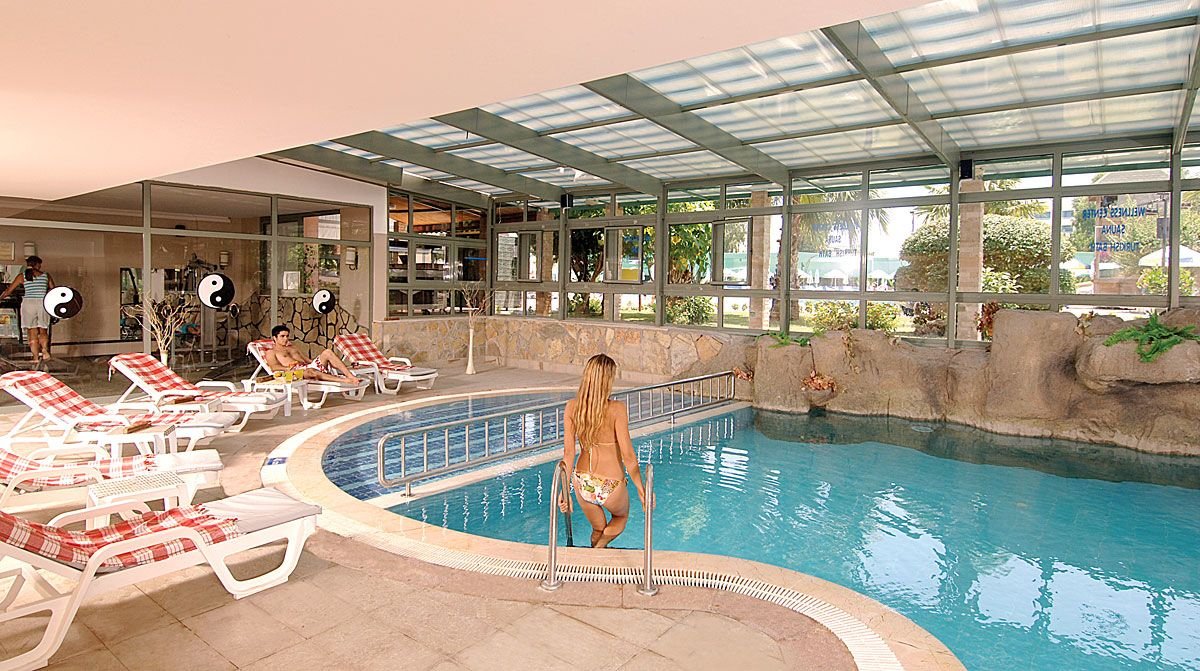 basen, nieregularny kształt, słodka woda, ok. 900 m², gł. 1,2-1,6 m, 2 zjeżdżalnie, brodzik dla dzieci, słodka woda, ok. 60 m², gł. 0,4 m, basen dla dzieci, słodka woda, ok. 80 m², gł. 0,4-0,8 m, 2 zjeżdżalnie, przy basenach bezpłatne leżaki, parasole i ręczniki (wymiana ok. 1 EUR); kryty basen, nieregularny kształt, słodka woda, ok. 50 m², brodzik kryty dla dzieci, słodka woda, ok. 15 m², gł. 0,4 m; kort tenisowy, siłownia, tenis stołowy, koszykówka, siatkówka plażowa, fitness, łaźnia turecka, sauna; plac zabaw dla dzieci, miniklub (5-12 lat), dzienne i wieczorne animacje; za opłatą: oświetlenie kortu i wypożyczalnia sprzętu, bilard, salon gier komputerowych, masaże, salon piękności; sporty wodne na plaży.