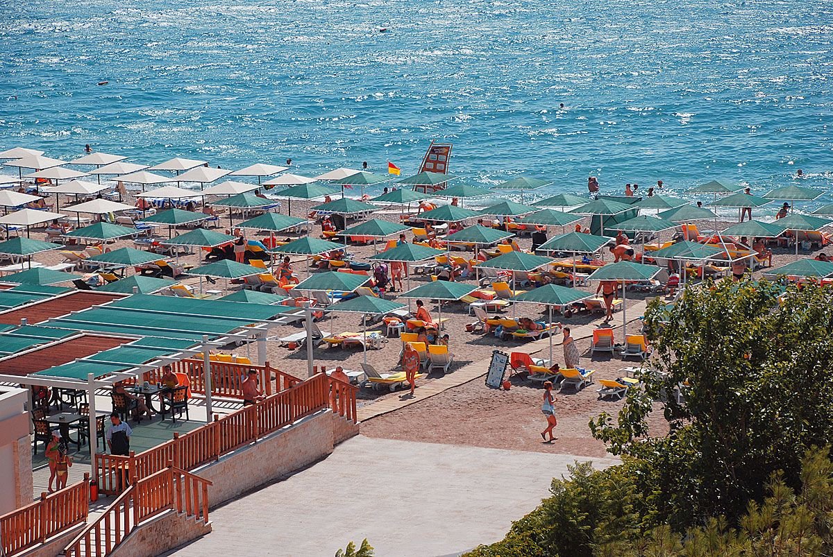 hotelowa, piaszczysto-żwirkowa, szeroka, łagodne zejście do morza, ok. 300 m od hotelu, bezpłatne parasole, leżaki i ręczniki (wymiana ok. 1 EUR); bar hotelowy objęty ofertą all inclusive – napoje chłodzące, piwo i przekąski w ciągu dnia.