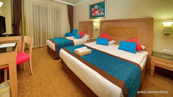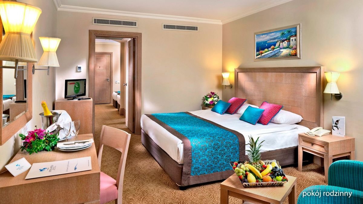 Położony w nigdy niezasypiającym Kemer hotel otoczony wszystkimi wakacyjnymi rozrywkami, o których można zamarzyć, jest idealną propozycją na gorący turecki urlop! Stylowe wnętrza, każde z własnym unikalnym charakterem kryją w sobie liczne restauracje pełne aromatycznych dań, bary z orzeźwiającymi koktajlami, a nawet cukiernię! Szeroka oferta sportowo-rekreacyjna zadowoli wszystkich miłośników aktywności – prócz bardziej tradycyjnych miejsc, takich jak kort tenisowy czy siłownia, hotel wyposażony jest też w kino oraz dyskotekę. Przestronne i komfortowe pokoje zapewnią należyty wypoczynek po dniu pełnym wrażeń lub po beztroskim relaksie na pobliskiej plaży z wydzieloną częścią hotelową – jest doskonałe miejsce do spędzania czasu z rodziną! Pyszne jedzenie, romantyczne zachody słońca, liczne udogodnienia dla dzieci i masa rozrywek dla dorosłych – tutaj znajdziesz to wszystko!