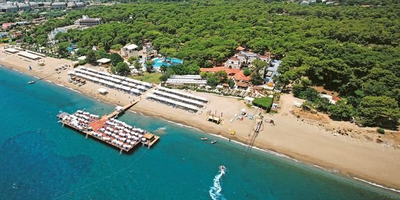 Pięciogwiazdkowy kompleks hotelowy zbudowany na kształt tureckiego starego miasta zaprasza na wyjątkowe wakacje! Pięknie położony, w zielonym otoczeniu, z widokiem na masyw gór Taurus, bezpośrednio przy piaszczystej plaży z molo. Resort jest doskonale przystosowany do przyjęcia rodzin z dziećmi – oprócz podstawowych udogodnień oferuje 2 kluby dla dzieci w różnych przedziałach wiekowych, basen ze zjeżdżalniami i animacje dla najmłodszych. Bogata oferta sportowa ucieszy miłośników wypoczynku w ruchu, a centrum spa z bezpłatną łaźnią turecką i sauną pozwolą odprężyć się po aktywnie spędzonym dniu.