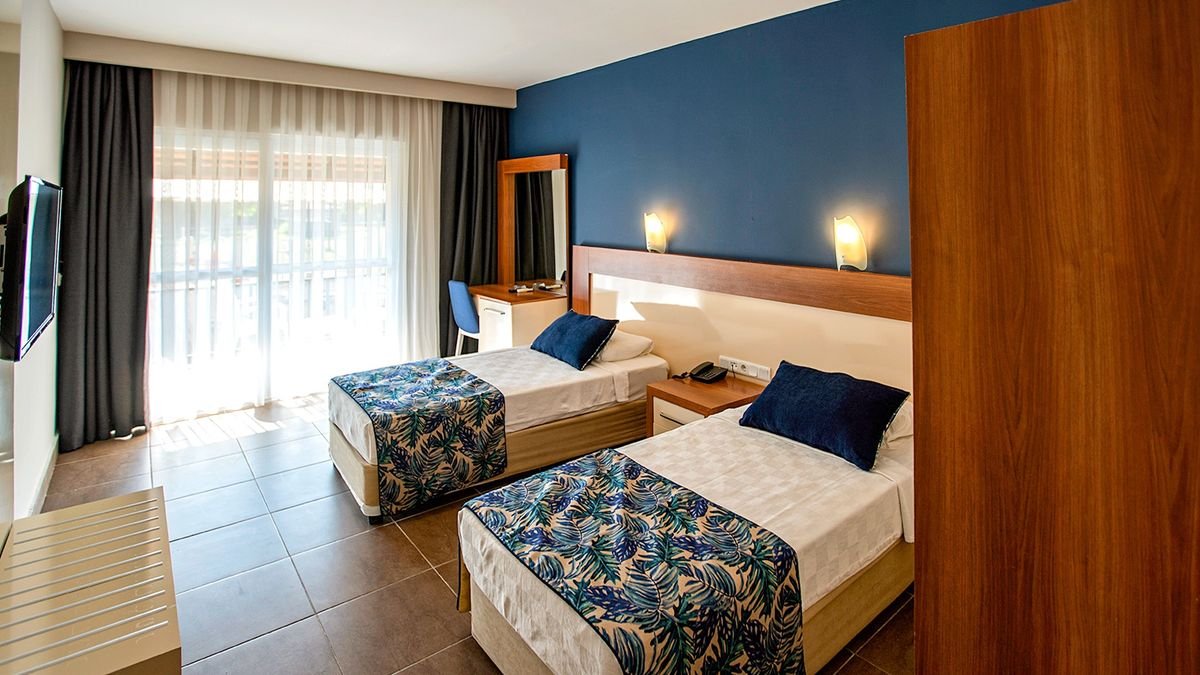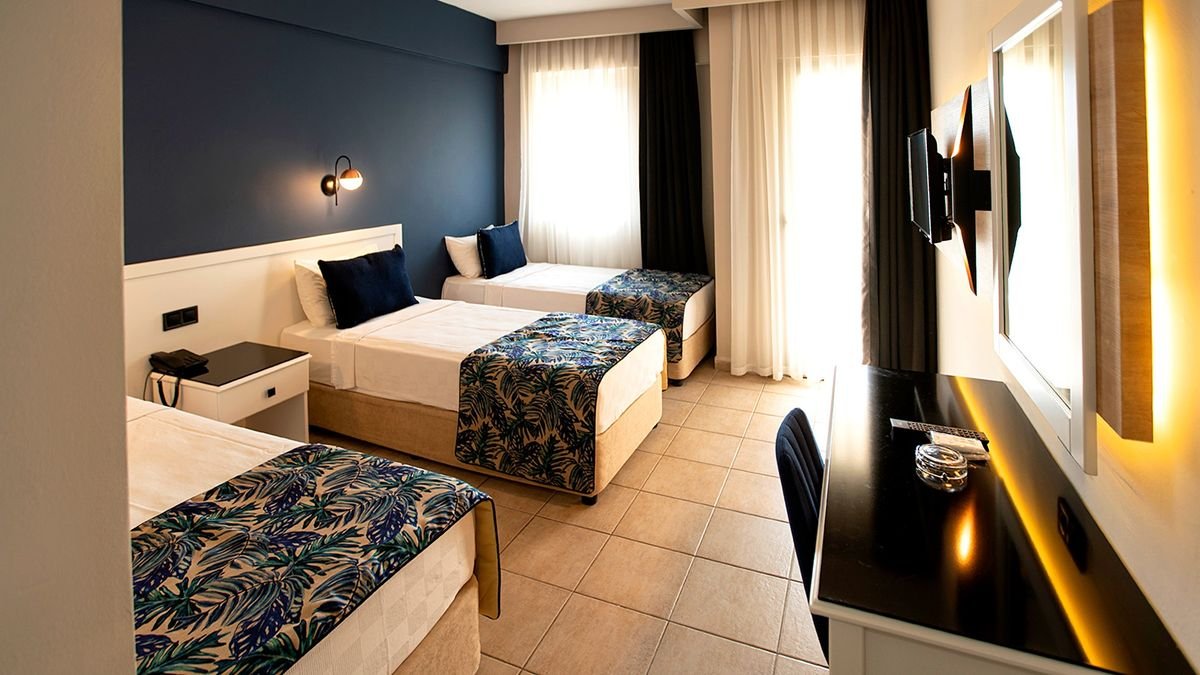 Piękny widok na góry, zadbany ogród, dużo zieleni i przytulna atmosfera w hotelu przygotowanym z myślą o rodzinnym wypoczynku. Położony zaledwie kilka kroków od sklepów oraz niedaleko plaży, gdzie na wydzielonej części Gości mogą korzystać z bezpłatnego serwisu w pełni delektując się zasłużonym odpoczynkiem. W hotelu nie brakuje atrakcji dla dzieci: brodzik dla najmłodszych, basen ze zjeżdżalniami, a także ciekawe animacje. Dorośli również będą mogli zadbać o wakacyjną formę – zapraszamy do centrum fitness, a na chwilę relaksu polecamy centrum spa z jacuzzi, sauną i łaźnią turecką. Piękne, słoneczne wspomnienia gwarantowane!