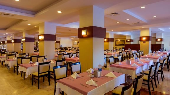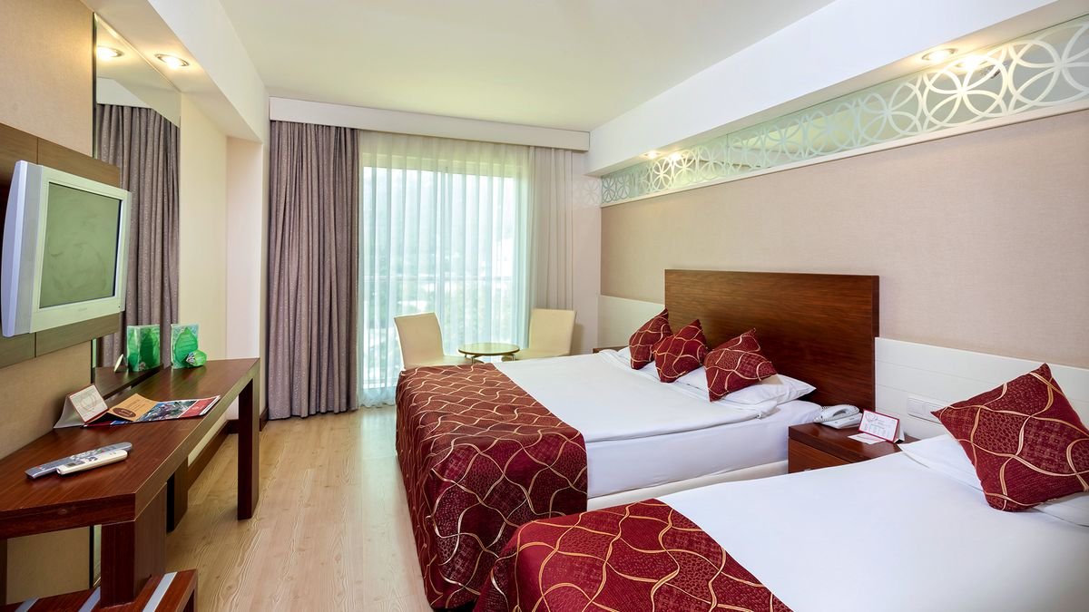 pięciogwiazdkowy, zadbany, zbudowany w 2004 r., odnowiony w 2012 r., 355 pokoi, 3 budynki, 5 pięter, przestronne lobby, całodobowa recepcja, restauracja główna Akdeniz – dania w formie bufetu, restauracja Sofra – przekąski w formie bufetu, restauracje à la carte - rybna (dodatkowo płatna) i turecka (wymagana wcześniejsza rezerwacja), cukiernia, 4 bary, w tym przy basenie; minimarket, jubiler, sklep z galanterią skórzaną, centrum konferencyjne dla 640 osób; bezpłatny internet bezprzewodowy; za opłatą: kawiarenka internetowa, fryzjer; akceptowane karty kredytowe: Visa, MasterCard.