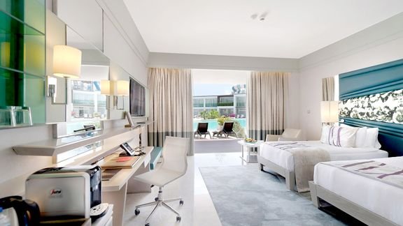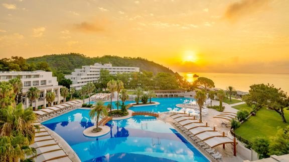 W tych widokach można się zakochać! Otoczony zielonymi wzgórzami, schodzącymi do turkusowego morza, oferuje luksusowy wypoczynek w wyjątkowej scenerii. Spektakularne zachody słońca, bujny, zielony ogród z egzotyczną roślinnością, taras z widokiem na morze, a tuż przy hotelu – piaszczysta plaża z bezpłatnym serwisem. Najmłodszych zachwycą zjeżdżalnie w aquaparku, radosne animacje i mnóstwo atrakcji na każdym kroku, dorośli natomiast mogą wypocząć w hotelowym centrum spa, przy basenie lub przy drinku w jednym z hotelowych barów. To 186 000 m² czystej, wakacyjnej zabawy w najlepszym stylu!