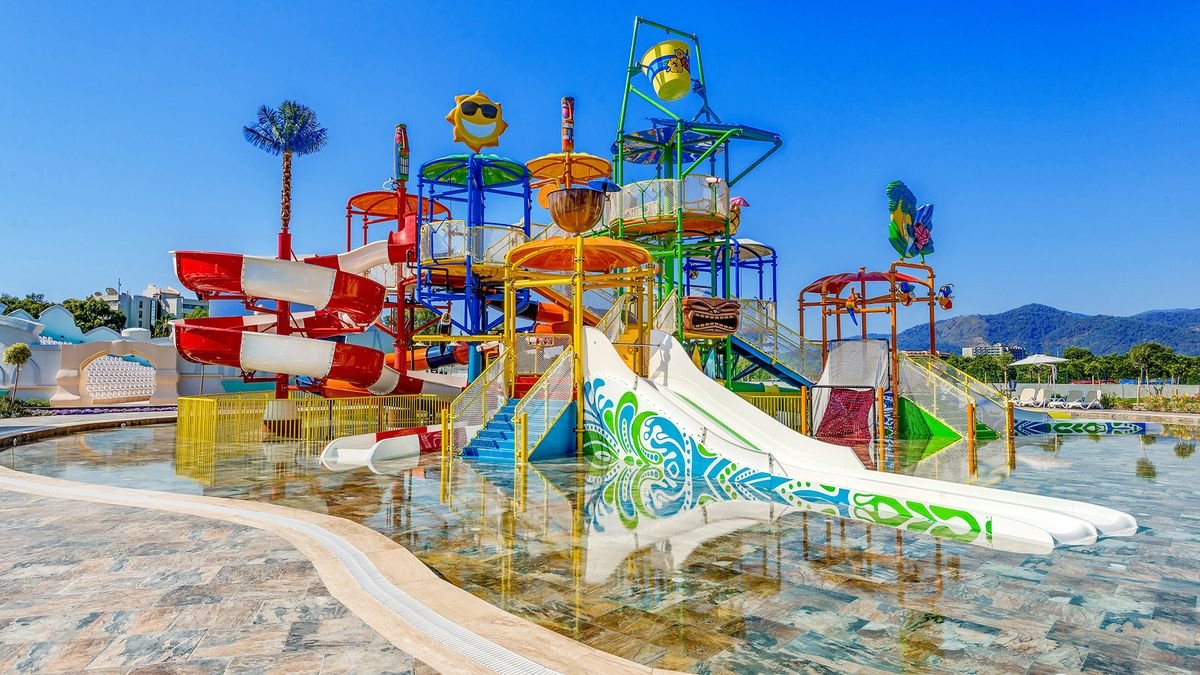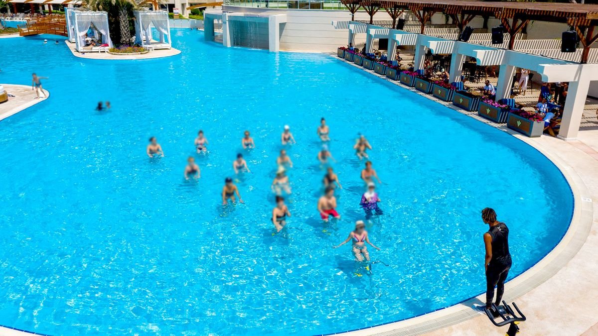 2 baseny, słodka woda: ok. 3319 m², gł. 1,4 m, wydzielona część dla dzieci i ok. 5548 m², gł. 1,4 m, aquapark (15 zjeżdżalni: 5 dla dzieci, 10 dla dorosłych, leniwa rzeka), basen dla dzieci, słodka woda, ok. 62 m², gł. 0,4 m, przy basenach bezpłatne parasole, leżaki, materace i ręczniki; 2 korty tenisowe (oświetlenie i wypożyczalnia sprzętu płatne), joga, pilates, cross fit, aqua aerobik, rzutki, boccia, aerobik, siatkówka plażowa, lekcje tańca, koszykówka, water polo, mini piłka nożna; dyskoteka, amfiteatr, animacje dla dorosłych i dzieci, muzyka na żywo, wieczorne show, wieczory tematyczne; miniklub (6 miesięcy-17 lat; 5 grup wiekowych), lekcje baletu dla dzieci (3-12 lat), piłka nożna dla dzieci (5-15 lat), plac i pokój zabaw dla dzieci, kino dla dzieci; ścianka wspinaczkowa, adventure park; centrum spa: bezpłatnie: basen kryty, ok. 220 m², gł. 1,4 m, hammam, łaźnia parowa, za opłatą: masaże.