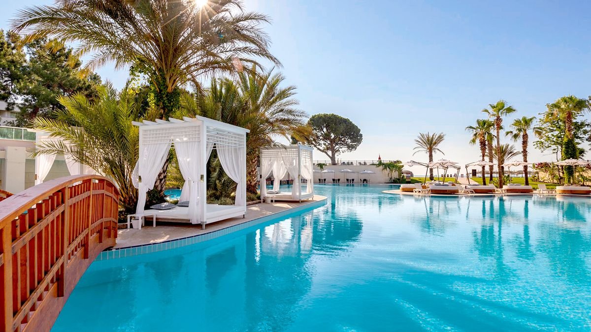 pięciogwiazdkowy, elegancki, stylowy, zbudowany w 2002 r., całkowicie odnowiony w 2014 r., pokoje odnowione w 2017 r., 770 pokoi, 2 budynki i wille, 6 wind, przestronne i eleganckie lobby, całodobowa recepcja, restauracja główna – dania w formie bufetu, kuchnia międzynarodowa, dania wegetariańskie, restauracja dla dzieci (otwarta tylko w porze obiadu) – dania w formie bufetu, 6 restauracji à la carte: turecka, rybna, międzynarodowa, azjatycka, włoska, amerykańska, w restauracjach dostępne foteliki i menu dla dzieci, 9 barów, cukiernia, lodziarnia, bar z przekąskami; wymiana walut; butiki, sklep z biżuterią, sklepy z pamiątkami; centrum konferencyjne dla 550 os.; taras z widokiem na morze, ogród, bezpłatny internet bezprzewodowy; za opłatą: room-service, fryzjer, opiekunka do dziecka; akceptowane karty kredytowe: Visa, MasterCard, American Express.