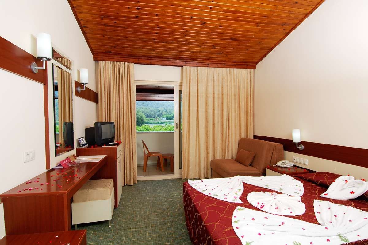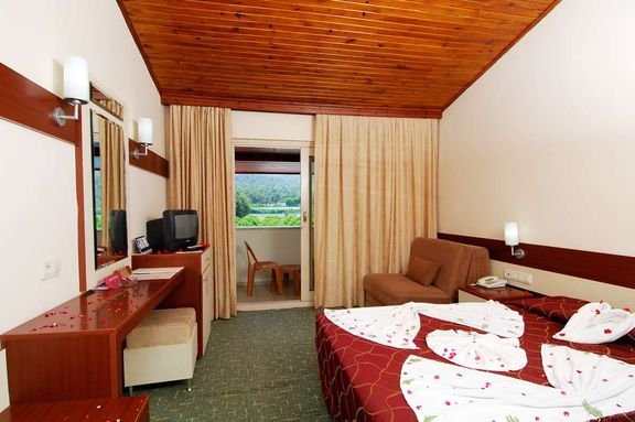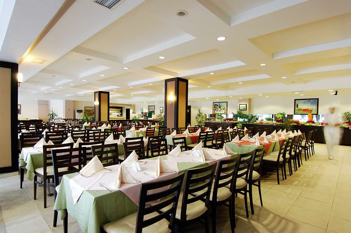 śniadanie (7.00-10.00), obiad (12.00-14.00), kolacja (19.00-21.00) w formie bufetu w restauracji głównej; kawa, herbata i ciasto (17.00-18.00), późna zupa (23.00-00.00); tureckie placki gozleme (11.30-16.30); napoje bezalkoholowe i lokalne napoje alkoholowe w wyznaczonym barze (10.00-23.00); wymagane noszenie opasek all inclusive.
