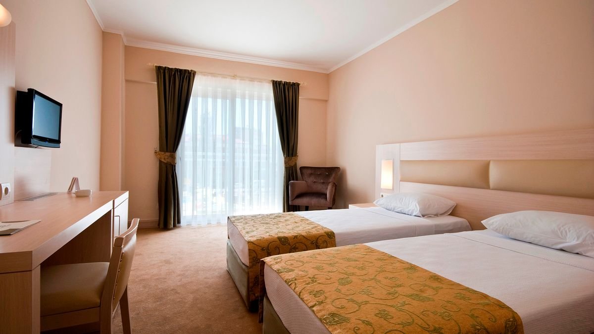 Położony blisko plaży z bezpłatnym serwisem i barem objętym all inclusive, jest doskonałą propozycją na romantyczny urlop czy wakacje całą rodziną! Ogromnym atutem hotelu jest basen z 2 zjeżdżalniami, w którym uwielbiają spędzać czas nie tylko dorośli, ale też dzieci – to świetny wybór na wodne szaleństwo w promieniach gorącego słońca! Hotelowa restauracja serwuje smaczne przysmaki kuchni tureckiej oraz międzynarodowej, a w barach można skosztować lokalnych napoi w ramach formuły all inclusive. Na miejscu jest również centrum spa z sauną i hammam oraz siłownia. Czas umilą sympatyczni animatorzy, a odpoczynek po całym dniu przyniesie relaks w przestronnych i klimatyzowanych pokojach.