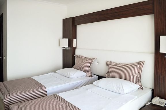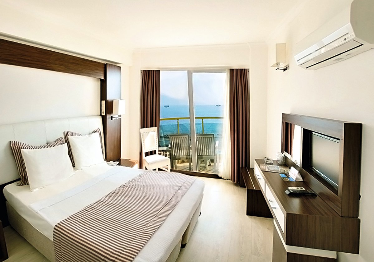 standardowy: 2-os. (możliwość 1 lub 2 dostawek), ok. 20 m², stylowy, zadbany, indywidualnie sterowana klimatyzacja, łazienka (wanna lub prysznic, wc; suszarka), telewizja satelitarna, telefon, za opłatą: sejf, minibar; bezpłatne łóżeczko dla dziecka do 2 lat na zamówienie przed przyjazdem; balkon; widok na morze.