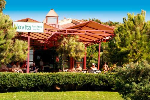 śniadanie (7.00-10.00), obiad (12.30-14.00), kolacja (19.30-21.30) w formie bufetu w restauracji głównej; kawa, herbata i ciasto (16.30-17.30); przekąski (14.00-16.30) w snack-barze Novita; napoje bezalkoholowe i lokalne napoje alkoholowe w wyznaczonym barze (10.00-23.00); wymagane noszenie opasek all inclusive.