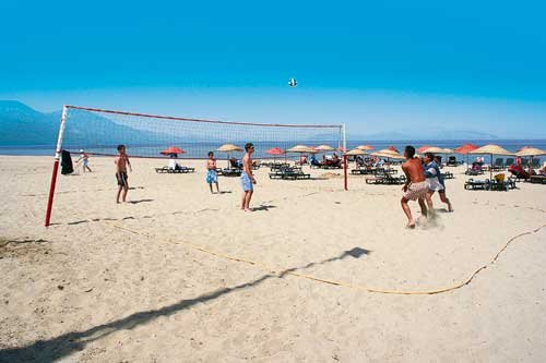 basen, owalny kształt, słodka woda, ok. 120 m², gł. 1,2-1,6 m, brodzik dla dzieci, słodka woda, przy basenie bezpłatne parasole, leżaki i ręczniki, materace za opłatą; siatkówka, koszykówka, tenis stołowy, rzutki, bule, piłka plażowa, aqua aerobic, aerobic; plac zabaw dla dzieci, mini-klub, amfiteatr, dyskoteka, animacje dla dorosłych i dzieci; bezpłatny kort tenisowy w ciągu dnia (wymagana wcześniejsza rezerwacja), oświetlenie kortu (ok. 10 EUR/godz.) i wypożyczalnia sprzętu, salon gier, bilard; sporty wodne na plaży: rowery wodne, narty wodne, kajaki, banan; centrum wellness: bezpłatnie: łaźnia turecka, sauna; płatne: zabiegi na twarz i ciało, masaże.