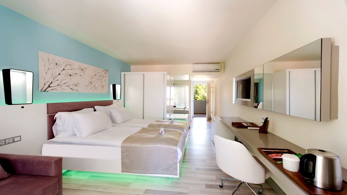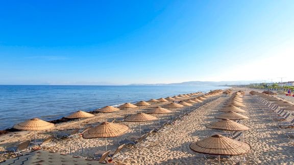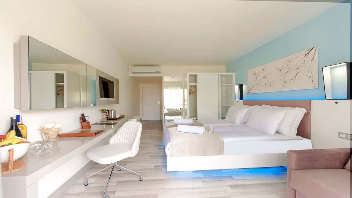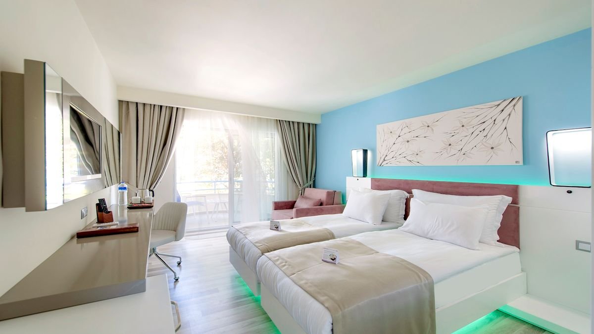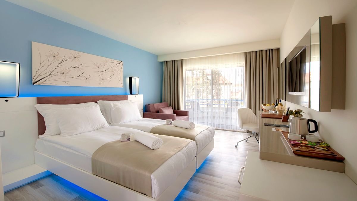 Nowoczesny, położony w spokojnej okolicy, tuż przy długiej, piaszczystej plaży, idealnie sprawdzi się zarówno na wypoczynek z rodziną, jak i we dwoje czy z przyjaciółmi. Jeśli lubisz spędzać czas aktywnie, na miejscu czekają baseny, w tym ze zjeżdżalniami, kort tenisowy i oferta sportów wodnych na plaży. Spragnieni relaksu ucieszą się z wydzielonej dla Gości hotelu części plaży z bezpłatnym serwisem oraz centrum spa z ofertą zabiegów i masaży. Pyszna hotelowa kuchnia zaspokoi smaki największych smakoszy, a komfortowe pokoje idealnie sprawdzą się na wypoczynek po całym dniu.