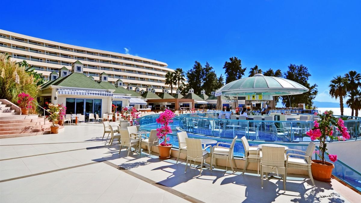 czterogwiazdkowy o podwyższonym standardzie, jeden z lepszych hoteli w Kusadasi, elegancki, zbudowany w 1997 r., odnowiony w 2018 r., 319 pokoi, 3 budynki, 6 pięter, 6 wind, przestronne lobby, całodobowa recepcja, restauracja główna – dania w formie bufetu, kuchnia międzynarodowa, dostępne foteliki i menu dla dzieci, dania wegetariańskie, 3 restauracje à la carte: Otoman – kuchnia turecka, Blue Sea Food – dania rybne, Italia – kuchnia włoska; bar w lobby, bary przy basenie, snack-bar, bar na plaży; minimarket, ogród; bezpłatny internet bezprzewodowy w lobby; za opłatą: fotograf, fryzjer, punkt internetowy, room-service, pralnia, wypożyczalnia samochodów; występują różnice poziomów – hotel nie jest polecany osobom z ograniczeniami ruchowymi; akceptowane karty kredytowe: Visa, MasterCard.