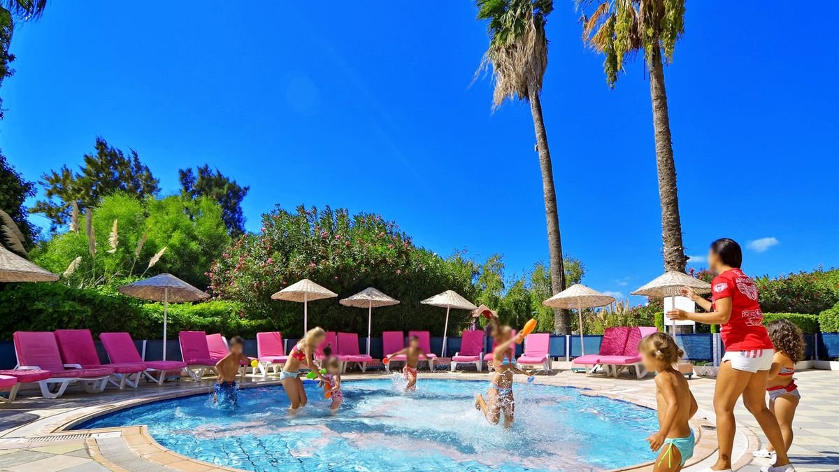 basen, owalny kształt, słodka woda, ok. 450 m², gł. 1,4-1,6 m, brodzik dla dzieci, słodka woda, ok. 30 m², gł. 0,4 m, przy basenie bezpłatne parasole, leżaki, materace i ręczniki; 2 korty tenisowe z wypożyczalnią sprzętu (oświetlenie płatne), bilard, tenis stołowy, rzutki, aerobik, centrum fitness, step, aqua aerobik, rowery wodne, kajaki; plac zabaw dla dzieci, miniklub (4-12 lat), amfiteatr, dyskoteka, animacje dla dorosłych i dzieci: gry i zabawy, program sportowy, nocne występy, muzyka na żywo; za opłatą: sporty wodne na plaży; centrum spa: bezpłatnie: sauna, łaźnia turecka, za opłatą: masaże, zabiegi kosmetyczne.