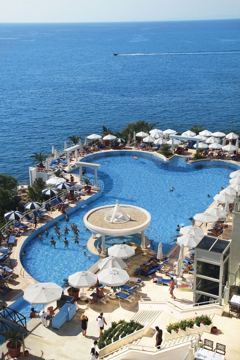 Nowoczesny hotel atrakcyjnie położony na klifie z pięknym widokiem na zatokę i Gołębią Wyspę z niewielkim, kamiennym fortem. Ceniony przede wszystkim za świetny serwis, liczne atrakcje sportowe i popularną formułę all inclusive, jest doskonałym wyborem dla aktywnych wczasowiczów ceniących komfort i wygodę. Centralnym punktem w hotelu jest fantazyjnie zaprojektowany basen z barem typu swim-up - miejsce na relaks z drinkiem i błękitnym morzem w tle. W zasięgu spaceru centrum urokliwego i pełnego turystycznych atrakcji Kusadasi.