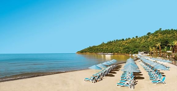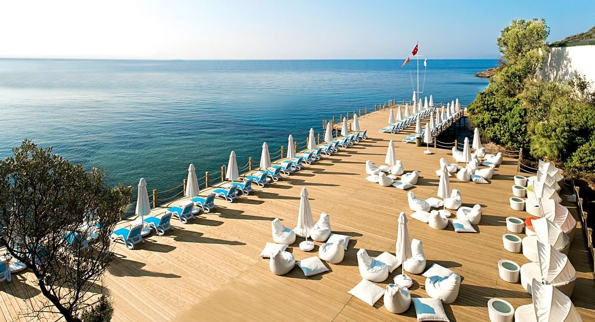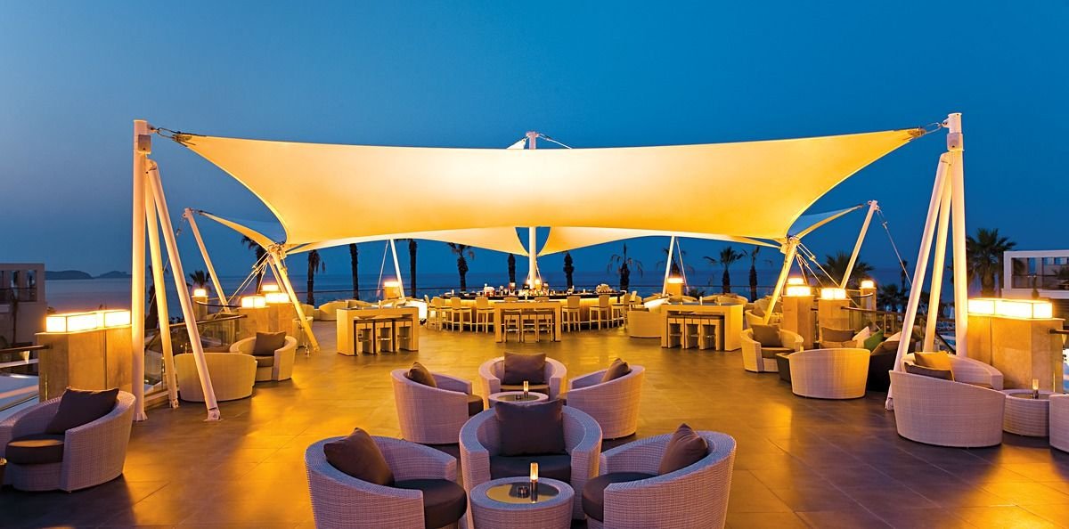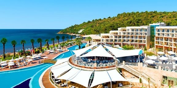 pięciogwiazdkowy, elegancki i stylowy, zbudowany w 2010 r., 268 pokoi, 1 budynek, 4 piętra, 6 wind, przestronne lobby, całodobowa recepcja, restauracja główna – dania w formie bufetu, kuchnia międzynarodowa, dostępne foteliki dla dzieci, dania wegetariańskie, 3 restauracje à la carte – obsługa kelnerska, kuchnia międzynarodowa, rybna i turecka, 7 barów: lobby bar – całodobowy, bar przy basenie, Piano Bar, Terrace Bar, Jazz Bar, Disco Bar, bar na plaży; sklep z pamiątkami, butiki, minimarket; centrum kongresowe dla 450 osób, taras z widokiem na morze, ogród, bezpłatny internet bezprzewodowy w lobby; za opłatą: room-service, pralnia, fryzjer, opiekunka do dziecka; akceptowane karty kredytowe: Visa, MasterCard.