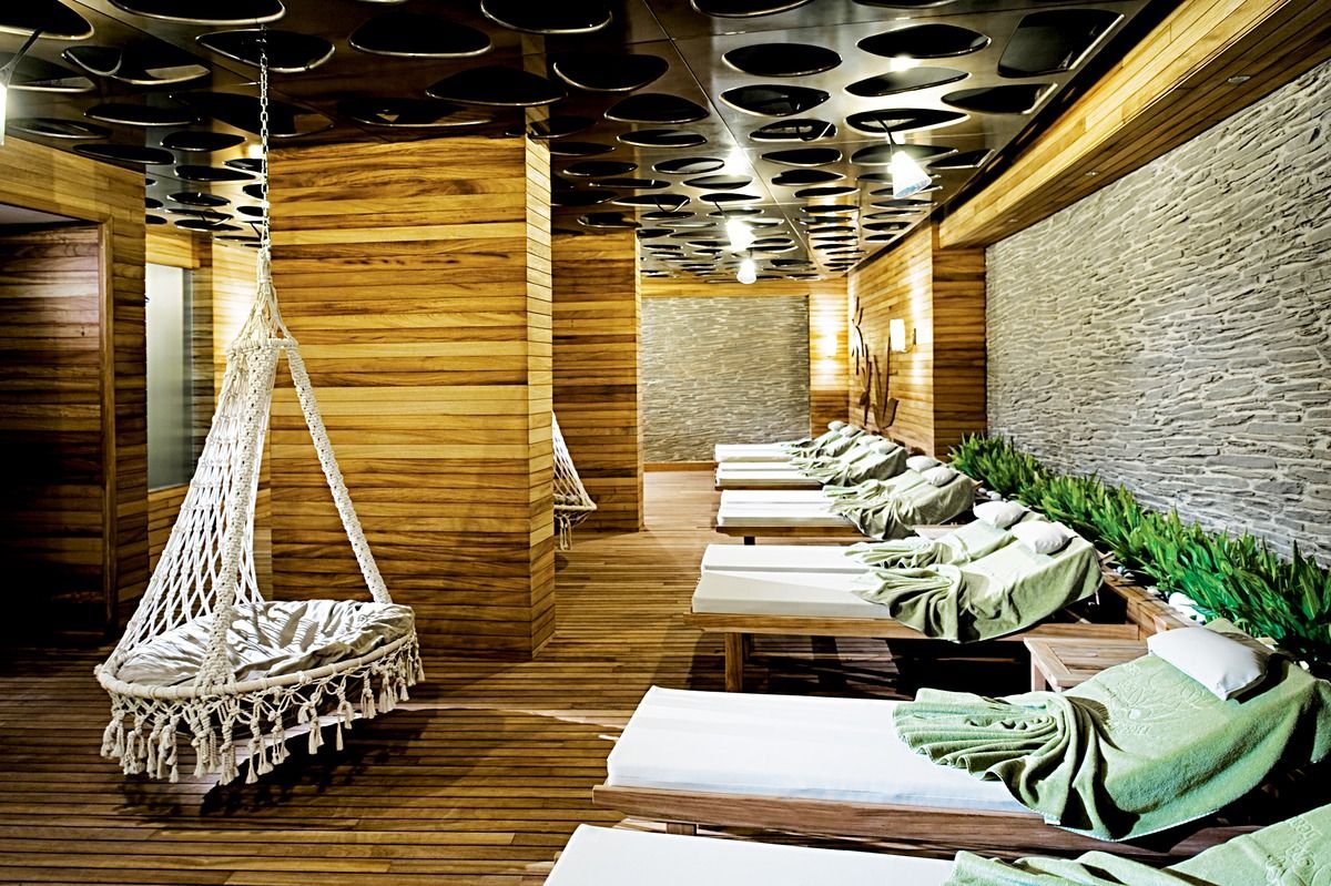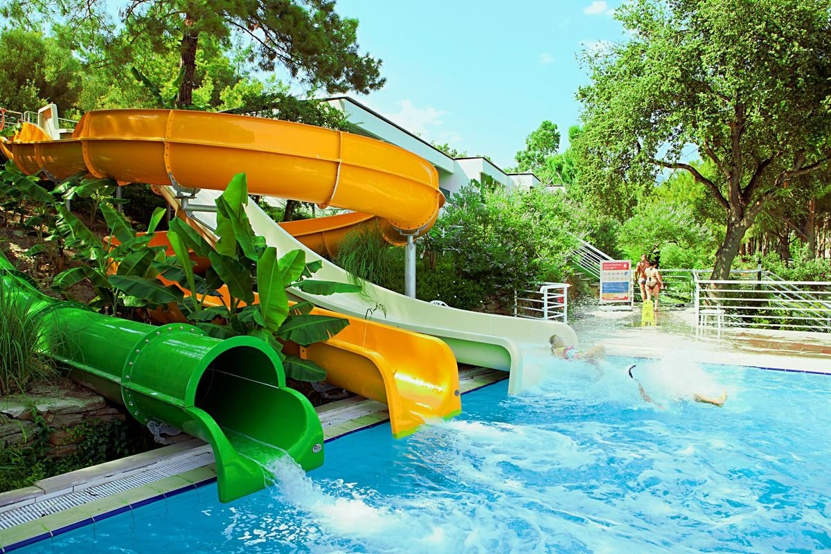 basen, nieregularny kształt, słodka woda, ok. 2000 m², gł. 1,4 m, basen, nieregularny kształt, słodka woda, ok. 1000 m², gł. 1,65 m, basen z 3 zjeżdżalniami (aquapark), słodka woda, ok. 200 m², gł. 1,4 m, dwa oddzielne brodziki dla dzieci, słodka woda, gł. 0,4 m, przy basenach bezpłatne parasole, leżaki, materace i ręczniki; kort tenisowy, tenis stołowy, koszykówka, mini piłka nożna, boccia, aerobik, aqua aerobik, gimnastyka, siatkówka plażowa, water polo, rzutki, szachy; plac i pokój zabaw dla dzieci, miniklub (4-12 lat), minidisco, całodzienne animacje dla dzieci i dorosłych, piano-bar, muzyka na żywo, dyskoteka; za opłatą: oświetlenie kortów, lekcje i wypożyczenie sprzętu do tenisa ziemnego, sporty wodne na plaży; centrum spa: bezpłatnie: sauna, łaźnia turecka; płatne: masaże, zabiegi pielęgnacyjne na twarz i ciało.