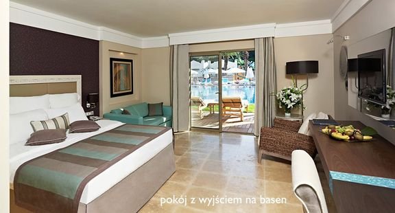standardowy: 2-os. (możliwość 1 dostawki), ok. 33 m², przestronny i elegancki, klimatyzowany, łazienka (wanna, prysznic, wc; suszarka), telewizja satelitarna, telefon, zestaw do kawy i herbaty, minibar, sejf, internet bezprzewodowy; bezpłatne łóżeczko dla dziecka do 2 lat na zamówienie przed przyjazdem; balkon lub taras (stolik i krzesełka); widok na morze za dopłatą, pokój z bezpośrednim wyjściem na basen oraz pokój rodzinny za dopłatą.