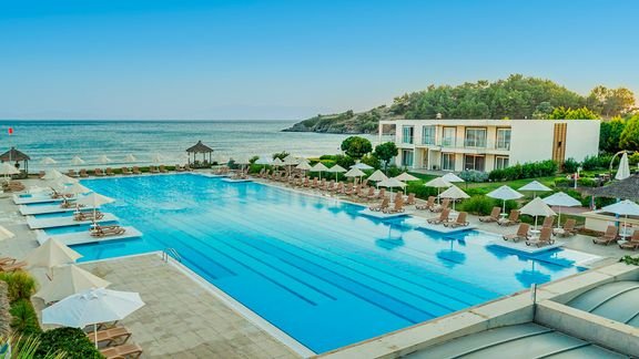Nowoczesny, pięknie zaaranżowany, oferuje wysoki standard i profesjonalny serwis. Polecany zarówno na wypoczynek z rodziną, jak i pełen relaks z bliską osobą lub w gronie przyjaciół. Hotel leży bezpośrednio przy prywatnej plaży, do dyspozycji Gości są także fantastyczne baseny, w tym duży basen główny, basen z miniaquaparkiem dla dzieciaków i basen ze zjeżdżalniami dla dorosłych i dla dzieci. Komfortowe, gustownie urządzone pokoje wyposażone są we wszystkie udogodnienia. Wakacje w najlepszym stylu, hotel, który spełni oczekiwania nawet najbardziej wymagających Klientów.