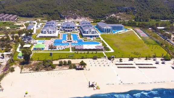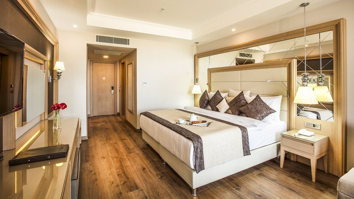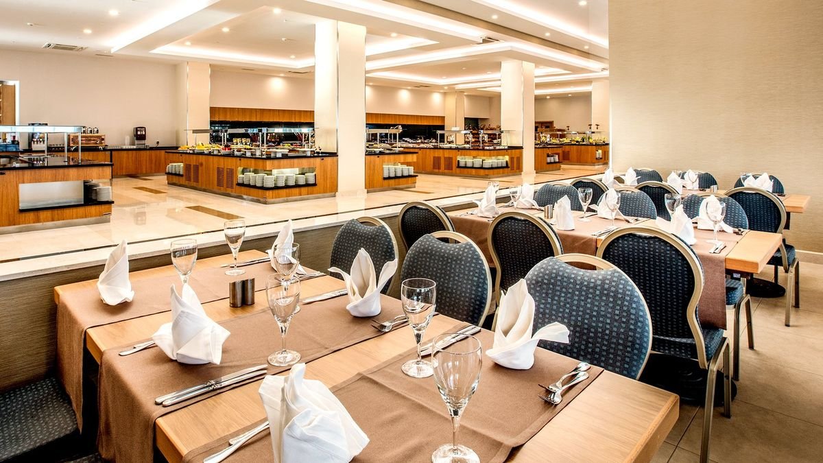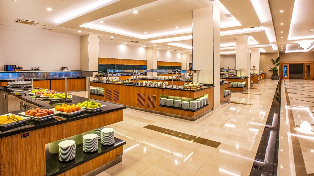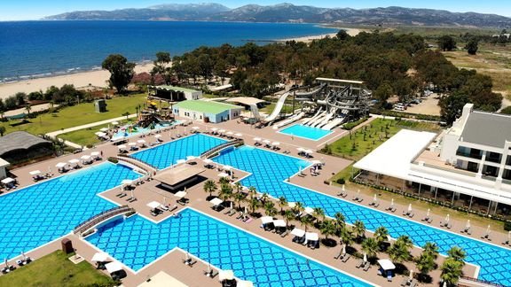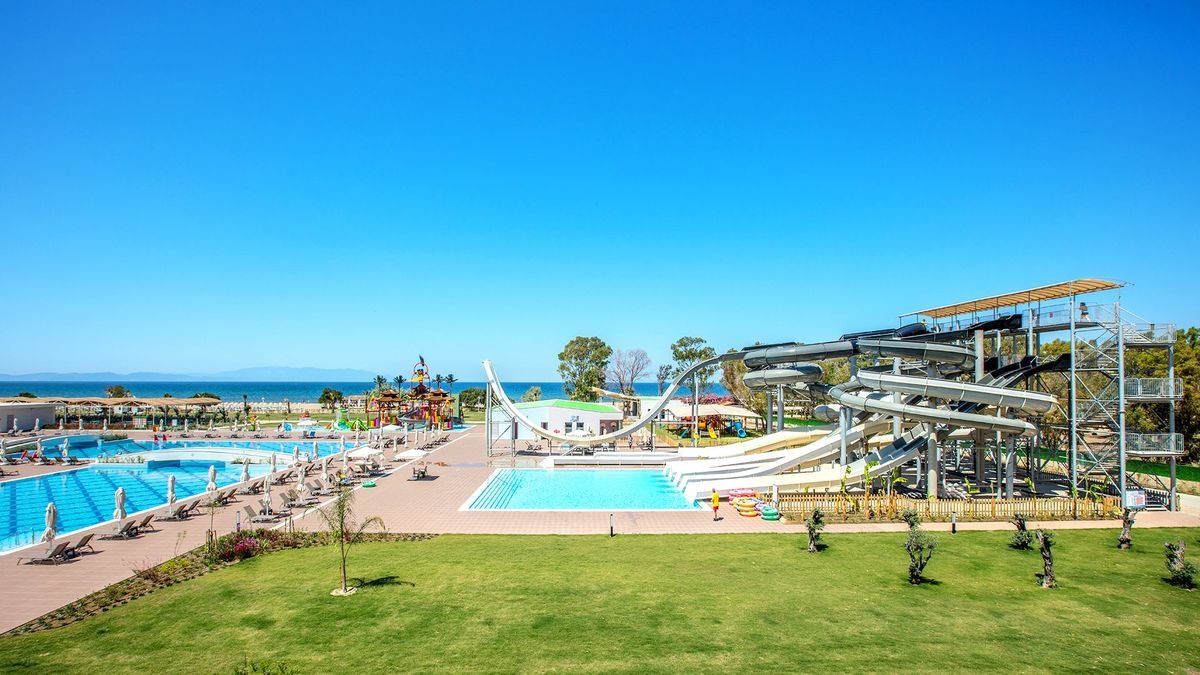 Plaża tuż obok, miękki piasek pod stopami, leżaki i bar w ramach all inclusive – wszystko gotowe na leniwe przedpołudnie. Dla tych, którzy wolą ruch niż leżenie, są korty tenisowe, zjeżdżalnie i aquapark, gdzie dzieciaki szaleją, ale dorośli też znajdą coś dla siebie. Wnętrza? Przemyślane, wygodne, z klimatem sprzyjającym odpoczynkowi. A jeśli marzy się cisza i regeneracja – hammam, sauny i basen w strefie spa czekają na relaks bez pośpiechu. Dopełnieniem całości są ciekawe animacje i wieczorne show, które wprowadzają przyjemny rytm dnia i sprawiają, że nawet po zachodzie słońca nie brakuje tu dobrej energii.