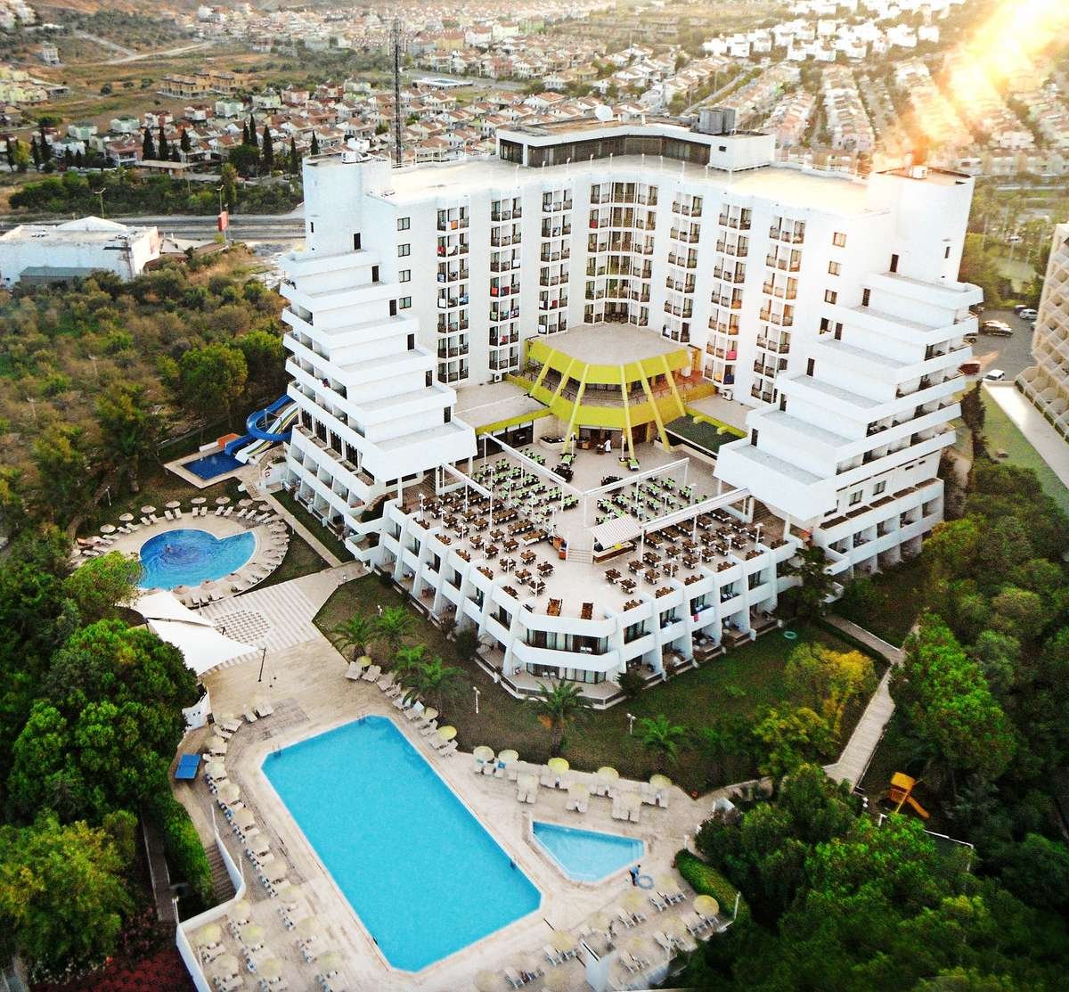 ok. 6 km od centrum KUSADASI ze sklepami, restauracjami i tawernami; ok. 80 km od portu lotniczego w Izmirze; przystanek autobusowy ok. 50 m od hotelu (Kusadasi).