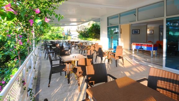 Doskonale położony, blisko sklepów, barów i plaży, z pięknymi widokami na wpadające do morza wzgórza. Można tu zrelaksować się na leżaku, chłonąc promienie słońca, spróbować przysmaków w hotelowej restauracji w ramach znanej i lubianej formuły all inclusive lub przejść się na spacer urokliwą promenadą i podziwiać wspaniały krajobraz. Doceniany za sympatyczną obsługę, która zawsze z uśmiechem chętna jest do pomocy, oferuje również basen, który jest ulubionym miejscem spotkań nie tylko dla najmłodszych, ale i też starszych Gości.