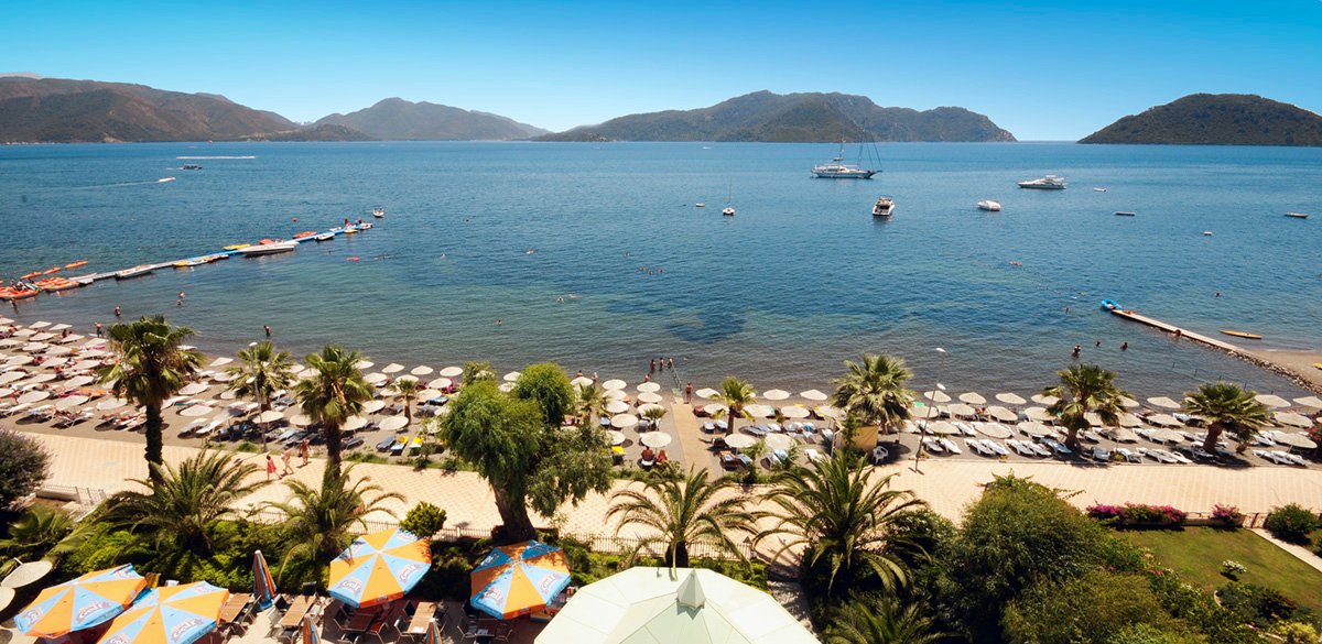 ok. 2 km od centrum MARMARIS, w pobliżu liczne sklepy i bary; ok. 90 km od lotniska w Dalaman; przystanek autobusowy ok. 300 m od hotelu.