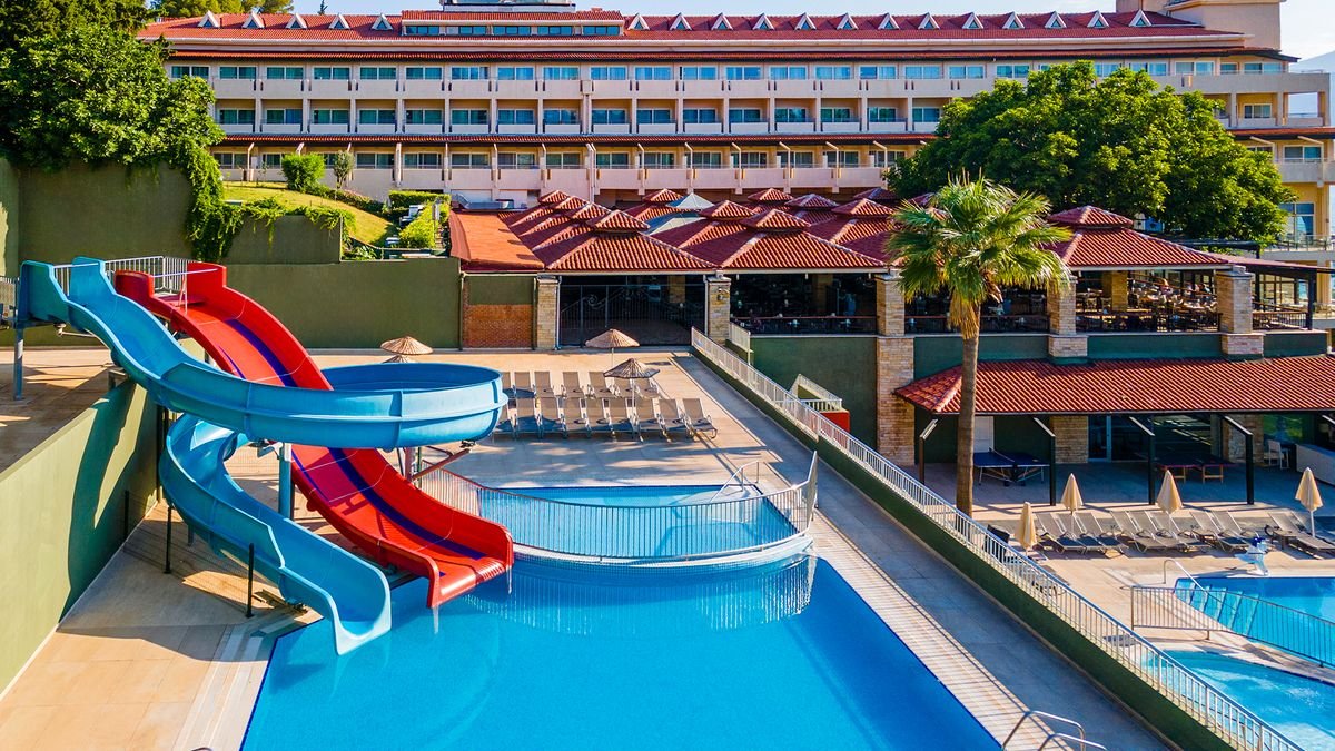 Idealnie położony w pachnącej sosnami piniowymi okolicy, z niesamowitymi widokami na bezkresne Morze Egejskie, doskonale sprawdzi się na wyjazd z przyjaciółmi czy dziećmi. Hotel może pochwalić się dużym zapleczem gastronomicznym – na miejscu jest aż 5 wysokiej klasy restauracji, gdzie serwuje się wyborne dania z różnych zakątków świata oraz 6 barów, w tym przy plaży, w których można skosztować smacznych, orzeźwiających koktajli i napojów. Goście szukający spokojnego wypoczynku mogą pływać w skąpanych w słońcu basenach, opalać się na plaży lub odprężyć się podczas masażu w hotelowym centrum spa, ci bardziej aktywni chętnie grają tu w tenisa czy koszykówkę, a miłośnicy wodnego szaleństwa próbują swoich sił w nurkowaniu. Uwielbiane przez turystów animacje, są ciekawie prowadzone przez sympatycznych i profesjonalnych animatorów – to fantastyczna propozycja na spędzenie czasu z dziećmi, które pokochają zabawy i radośnie wykorzystają wolny czas! Po całym dniu pełnym wrażeń czas na odpoczynek w przestronnych, klimatyzowanych pokojach, które są gwarancją wysokiego poziomu komfortu. Jeśli pragniesz, by błogi relaks łączył się z aktywnością i dobrą zabawą to te miejsce będzie dla Ciebie strzałem w dziesiątkę!