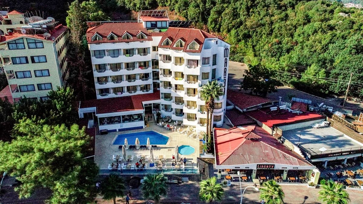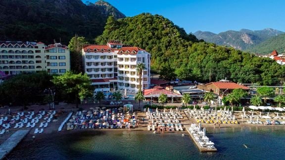 Położony w słynącej z malowniczej scenerii okolicy, dedykowany dorosłym Gościom hotel zaprasza na wakacje do słonecznej Turcji! Bliskość centrum popularnego kurortu – Icmeler – gwarantuje rozrywkę wszystkim, którzy lubią aktywnie spędzać czas, a piaszczysta plaża z bezpłatnym serwisem, od której hotel dzieli tylko kilka kroków, z pewnością ucieszy miłośników kąpieli słonecznych. Dodatkowym atutem będzie też kameralna atmosfera, a także taras z zachwycającym widokiem na morze.