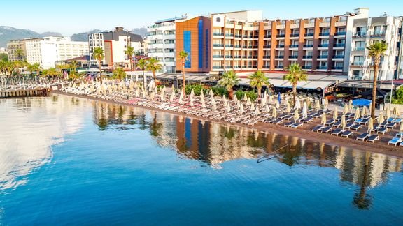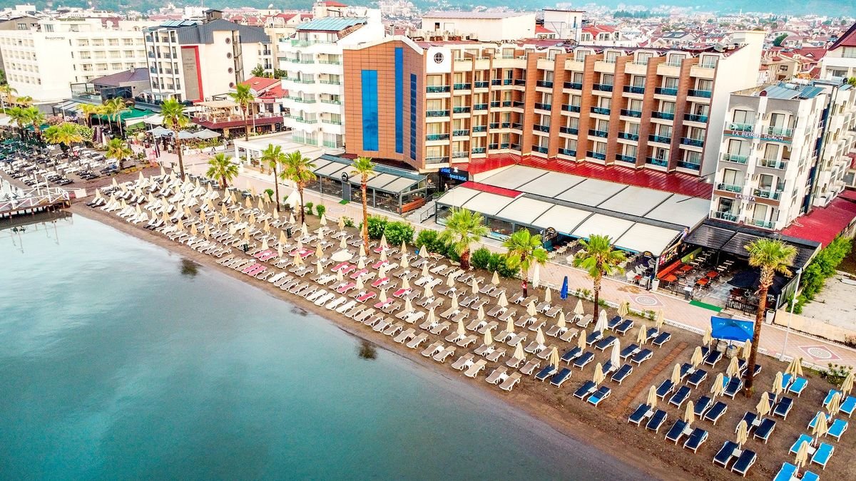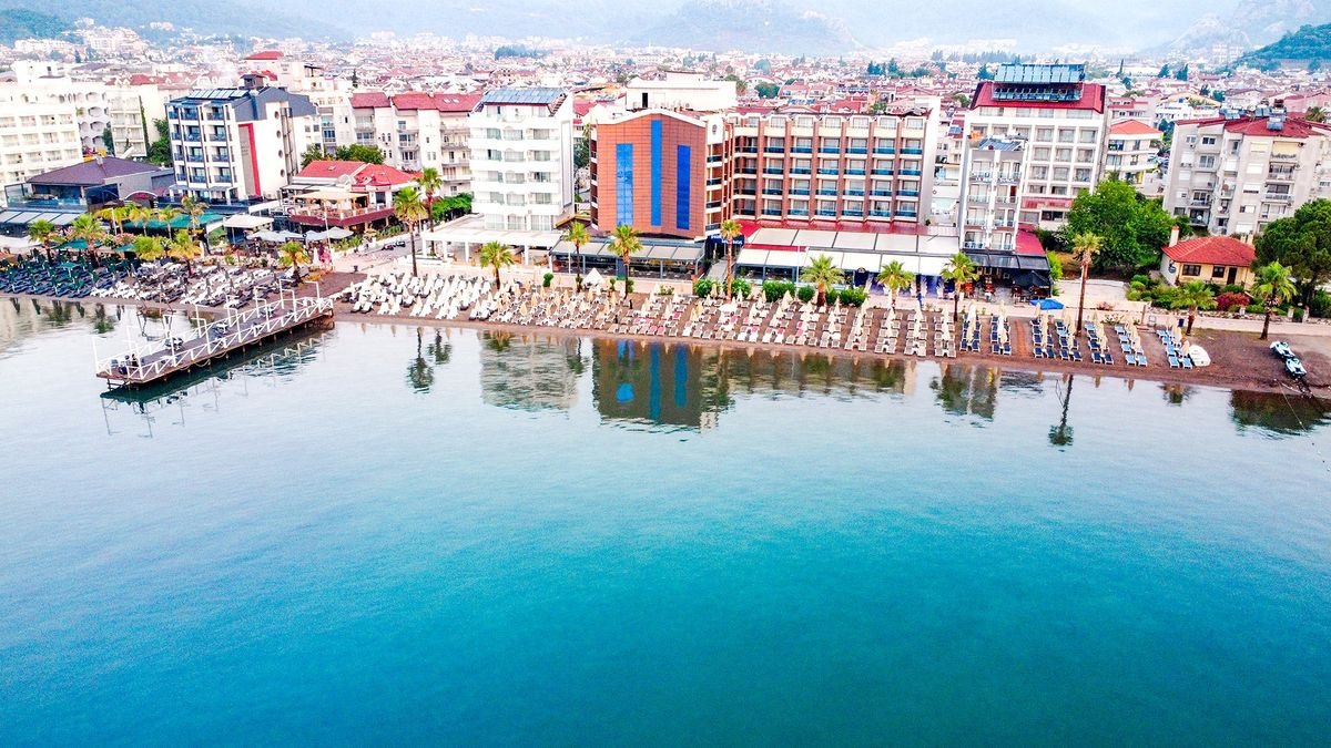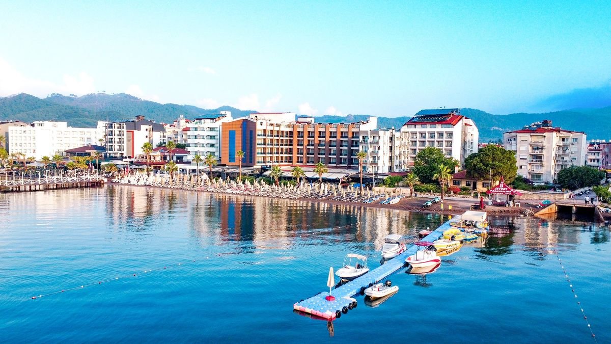 Wybierz się do słonecznej Turcji, gdzie czeka na Ciebie atmosfera błogiego relaksu i pełen wachlarz rozrywek w samym sercu Marmaris! Nie przegap okazji, by odwiedzić malowniczą plażę z bezpłatnym serwisem i pięknymi widokami na Morze Śródziemne, zrelaksuj się w basenie i delektuj pysznymi potrawami w restauracji. Komfortowe, nowocześnie urządzone pokoje zapewnią Ci prywatność, a świetna lokalizacja sprawi, że każda chwila spędzona tutaj będzie pełna niezapomnianych przeżyć!
