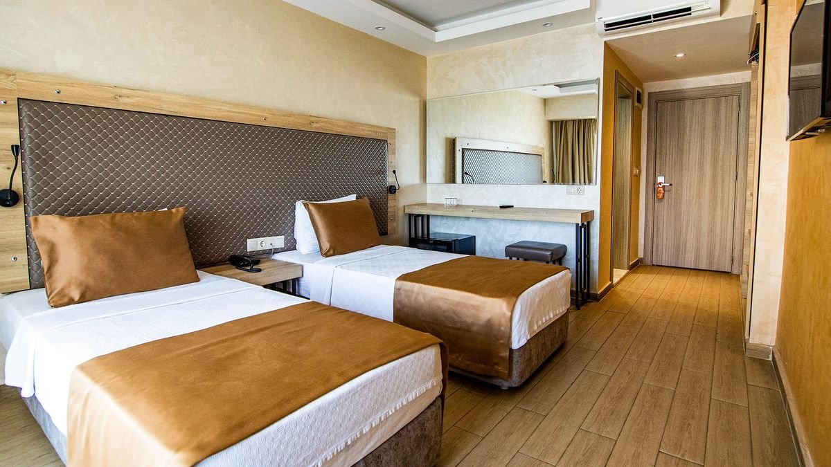 standardowy: 2-os. (możliwość dostawki dla os. dorosłej lub 2 dzieci), ok. 20 m², zadbany, indywidualnie sterowana klimatyzacja, łazienka (prysznic, wc; suszarka), internet bezprzewodowy, telewizja satelitarna, telefon, minibar (uzupełniany w wodę), sejf (płatny); bezpłatne łóżeczko dla dziecka do 2 lat na zamówienie przed przyjazdem; balkon (stolik i krzesełka); widok na morze za dopłatą.