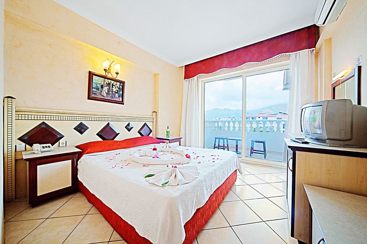 ok. 1 km od centrum MARMARIS ze sklepami, restauracjami i barami, ok. 4 km od Icmeler; 90 km od portu lotniczego w Dalaman; przystanek autobusowy ok. 50 m od hotelu (centrum Marmaris).