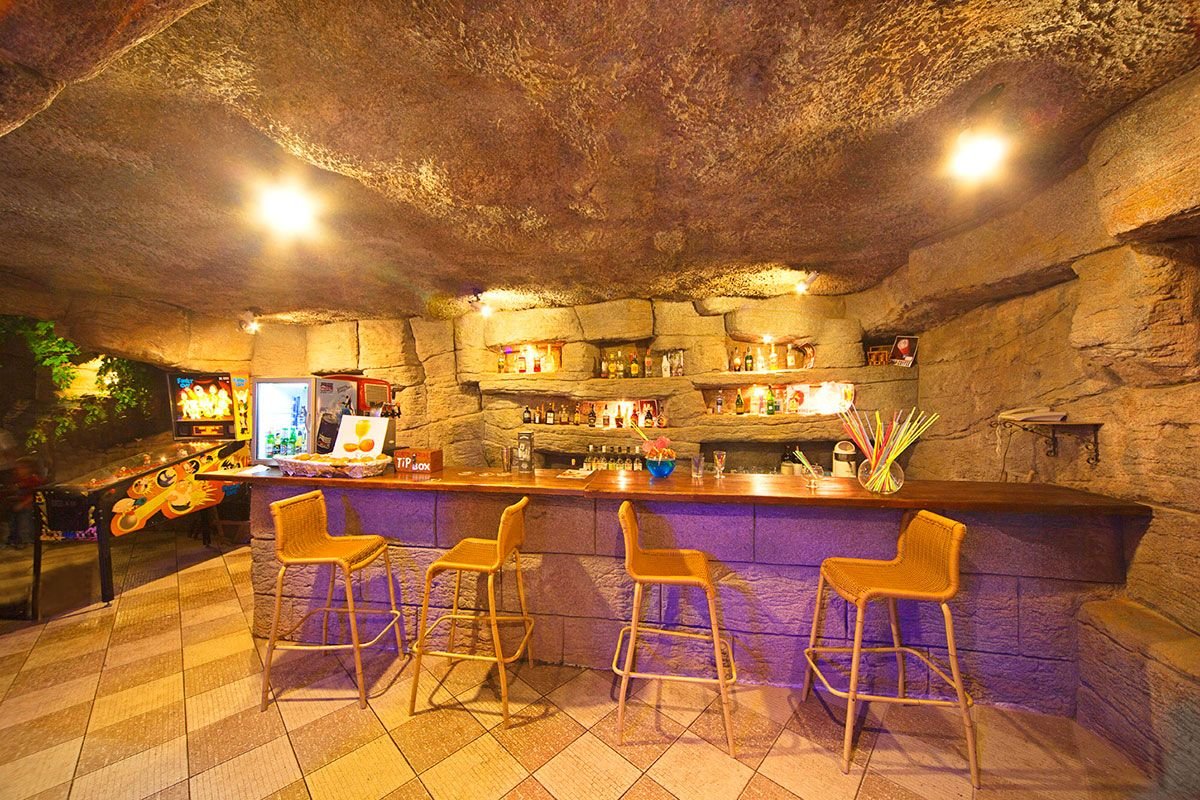 basen, nieregularny kształt, słodka woda, ok. 60 m², gł. 1,4 m, brodzik dla dzieci, słodka woda, gł. 0,3 m, przy basenach bezpłatne parasole, leżaki i materace; za opłatą: bilard, rzutki.
