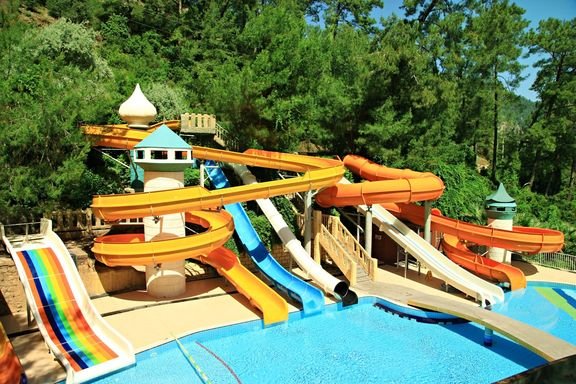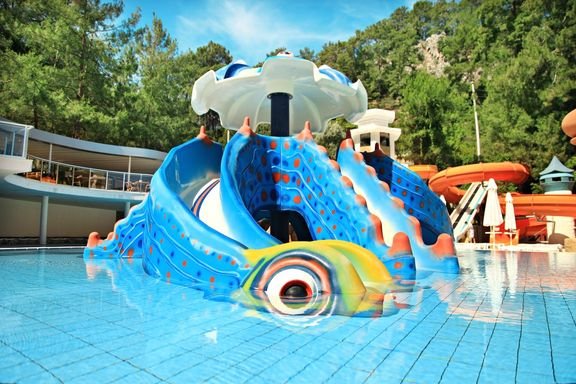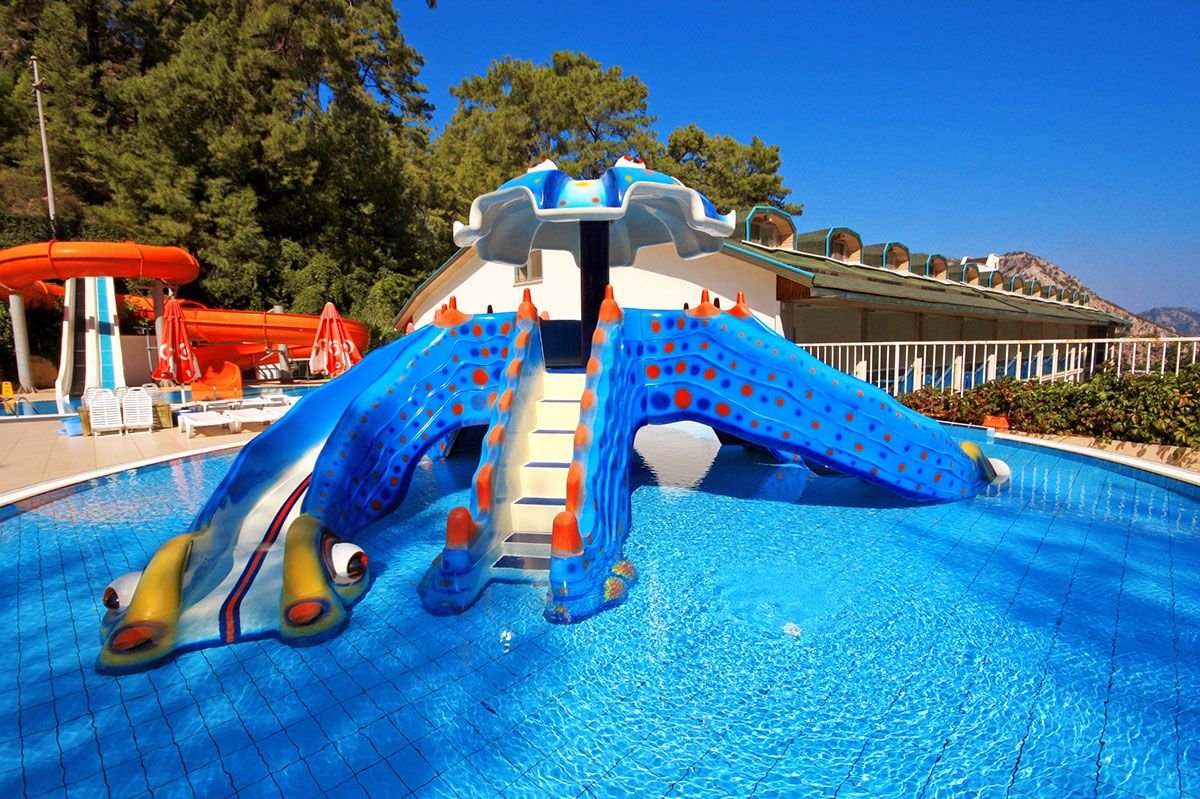 2 baseny, nieregularny i prostokątny kształt, słodka woda, ok. 400 m², gł. 1,2-1,6 m, brodzik dla dzieci, słodka woda, gł. 0,4 m i ok. 400 m², gł. 1,6 m, przy basenach bezpłatne parasole, leżaki i materace, ręczniki za kaucją; kryty basen, prostokątny kształt, słodka woda, ok. 70 m², gł. 1,6 m; aqua­park – basen z 7 zjeżdżalniami, brodzik ze zjeżdżalniami; tenis stołowy, rzutki, siatkówka plażowa, boule, bingo, aerobik, aqua aerobik, fitness; plac zabaw dla dzieci, miniklub (5-12 lat), maksiklub (13-16 lat), minidisco, amfiteatr, dyskoteka T-Night (napoje płatne), animacje dla dorosłych i dzieci: zawody, skecze, pokazy taneczne, wieczorny show; za opłatą: bilard, piłkarzyki; sporty wodne na plaży: banan, narty wodne, surfing, parasailing, kajaki; centrum spa: bezpłatnie (9.00-13.00): sauna, hammam; płatne: zabiegi na twarz i ciało, masaże.