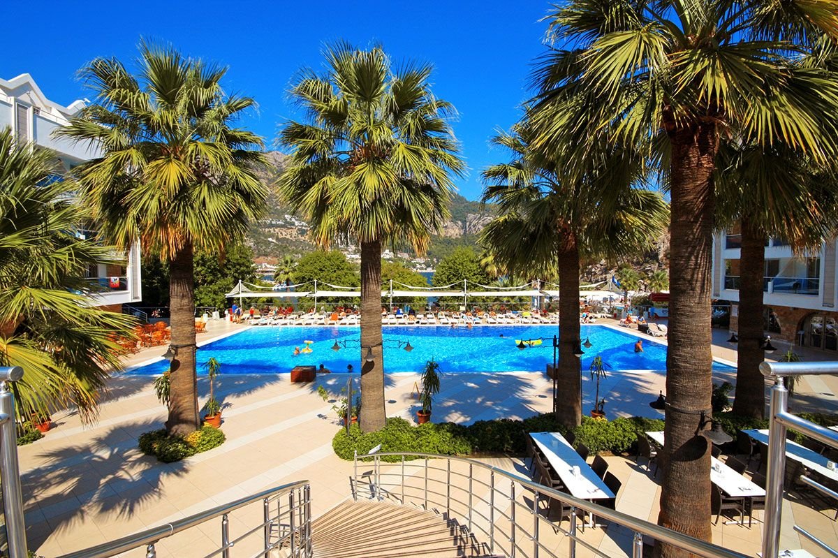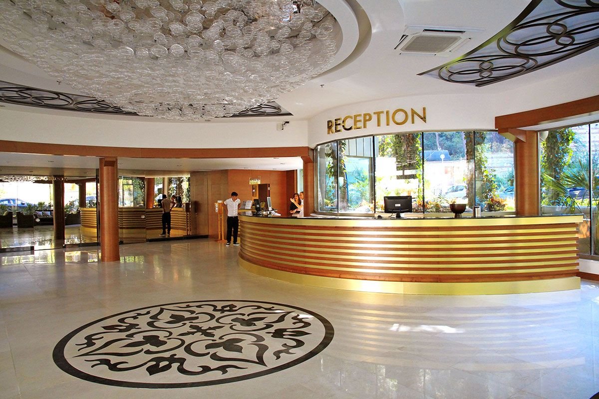 pięciogwiazdkowy, elegancki, położony na obszarze 54 tys. m², zbudowany w 1987 r., odnowiony w 2013 r., 380 pokoi, 5 budynków, 4-5 pięter, 5 wind, przestronny hol, całodobowa recepcja, restauracja główna – dania w formie bufetu, kuchnia międzynarodowa, dostępne menu dla dzieci, dania wegetariańskie, restauracja à la carte – kuchnia turecka, w restauracjach dostępne foteliki dla dzieci, bar przy basenie, snack bar, palm bar w pobliżu plaży, aqua bar, T-Club Disco; kantor, minicentrum handlowe: market, butik, fotograf; sala konferencyjna dla 60 osób, taras z widokiem na zatokę, bezpłatny internet bezprzewodowy w lobby; za opłatą: fryzjer; pokoje i udogodnienia dla niepełnosprawnych (podjazdy); akceptowane karty kredytowe: Visa, MasterCard, American Express.