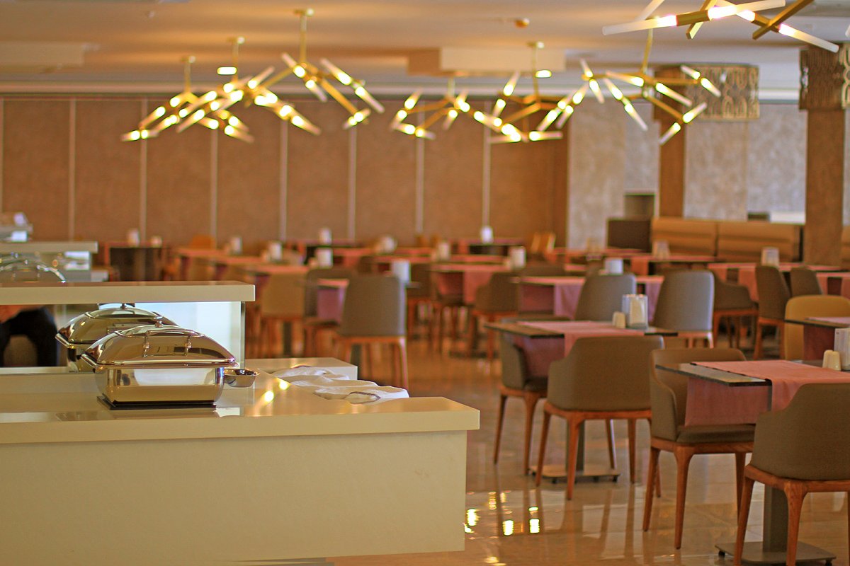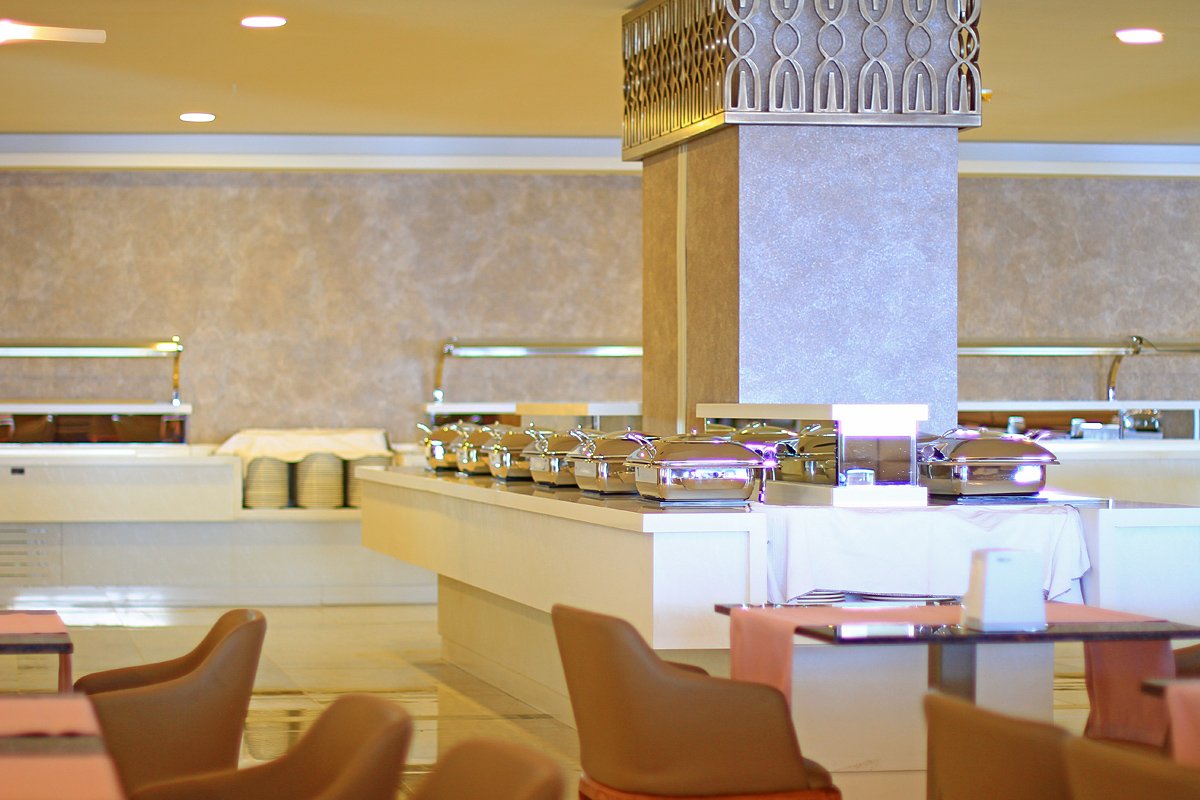 śniadanie (7.00-10.00), późne śniadanie (10.00-11.00), obiad (12.45-14.00), kolacja (19.30-21.30) w formie bufetu w restauracji głównej, raz na pobyt kolacja w jednej z restauracji à la carte; przekąski (12.00-16.00) w barze z przekąskami, lody (15.00-16.00), nocna przekąski (23.30-7.00) w wyznaczonym barze; lokalne napoje bezalkoholowe w wyznaczonym barze (24h) i wybrane alkoholole importowane (10.00-2.00) w barach.