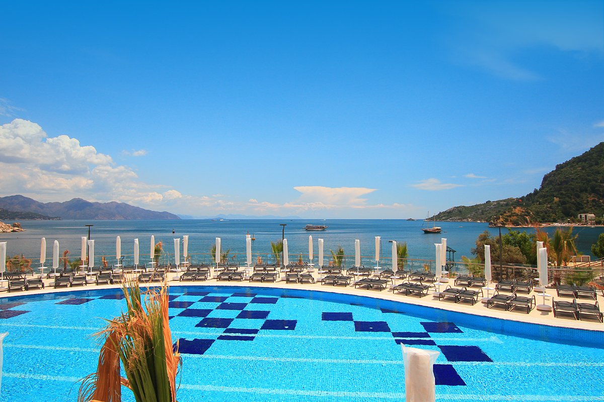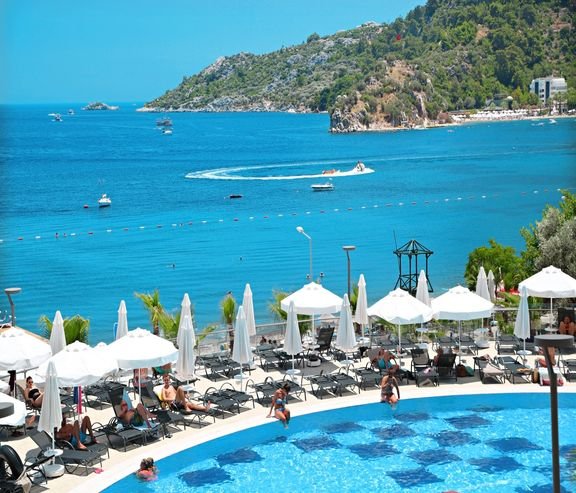 w centrum miejscowości Turunc, ok. 20 km od MARMARIS, najbliższe sklepy i bary ok. 100 m od hotelu; ok. 120 km od portu lotniczego w Dalaman.