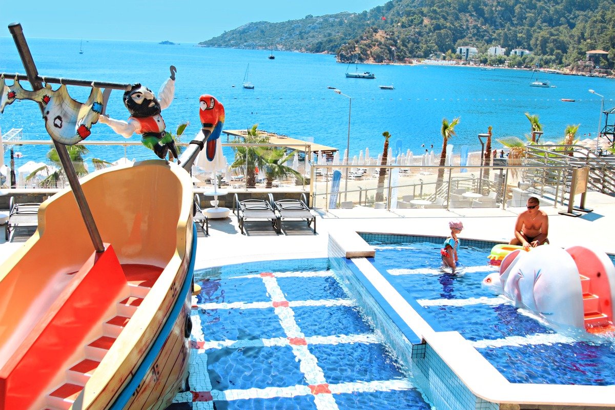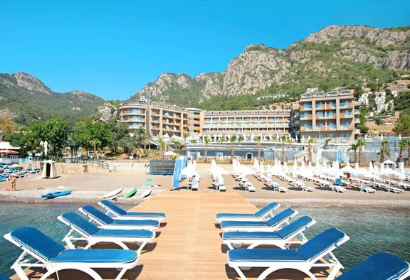 Nowo wybudowany, stylowy hotel to idealne miejsce na komfortowy i ekskluzywny wypoczynek. Dogodnie położony w centrum miejscowości, bezpośrednio przy plaży pozwala swobodnie korzystać z atrakcji okolicy. Łasuchów ucieszy bogata oferta all inclusive, która obejmuje smakowite posiłki i przekąski serwowane przez całą dobę. Dodatkowo Goście mogą korzystać z infrastruktury sąsiedniego Hotelu Turunc, który zaprasza na świetną zabawę w aquaparku z 7 zjeżdżalniami oraz do swoich restauracji.